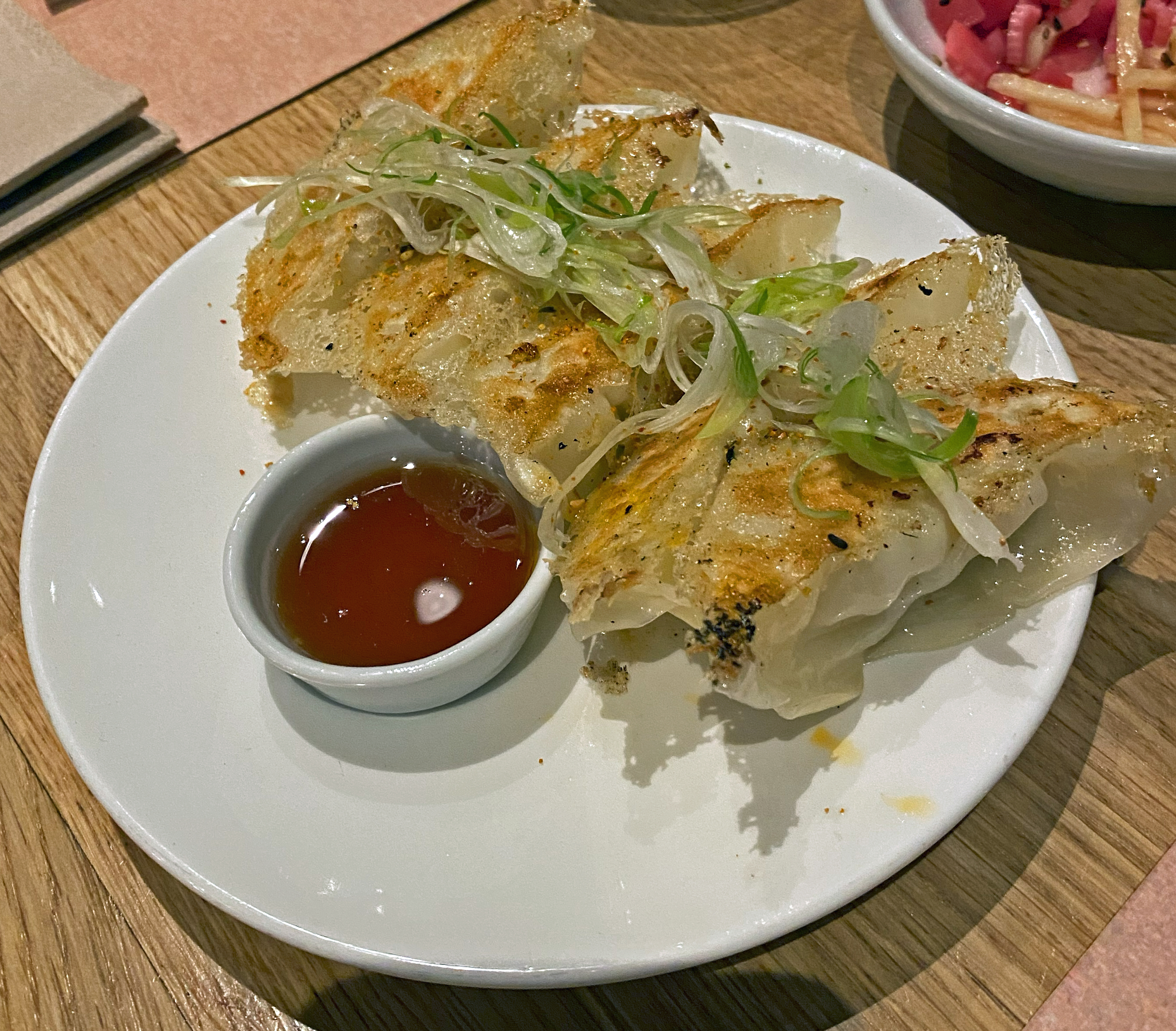 We visited a while ago but we thought it was really a restaurant for cooler weather as the menu comes from the north of China with dumplings and fresh noodles in hot soups. The restaurant is situated in the site of a previous Spanish restaurant and although the skin looks the same there are now bamboo seating and small tables with Chinese pictures and posters as well as small vases of flowers.