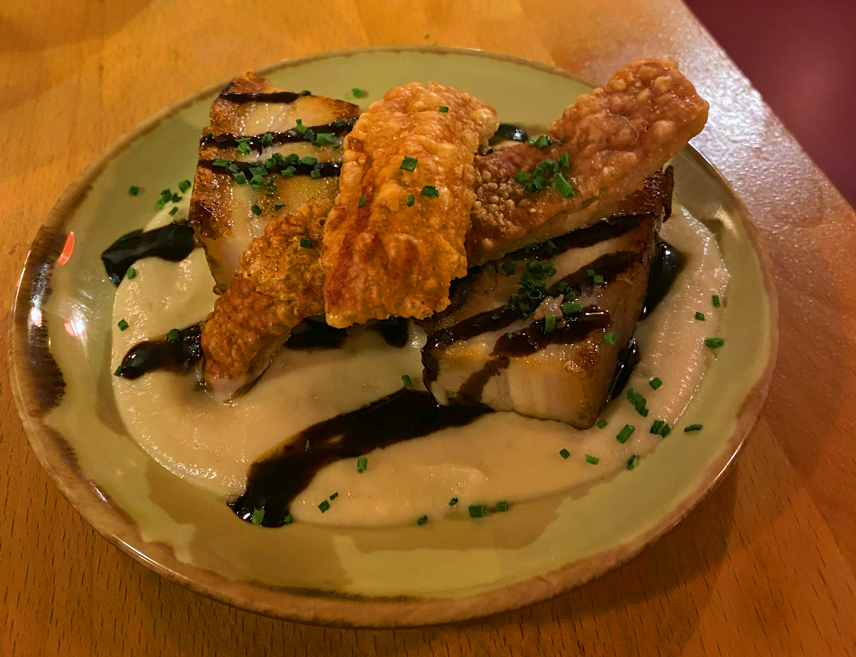 The starters are small plates of interesting vegetables like a shredded potato salad with chilli oil and vinegar. Then larger dishes are fried or street food including a cumin beef burger and then there are soups and more classic dishes including rice. The list is very long so maybe look before you visit or you will be overwhelmed. The desserts I will come to later.