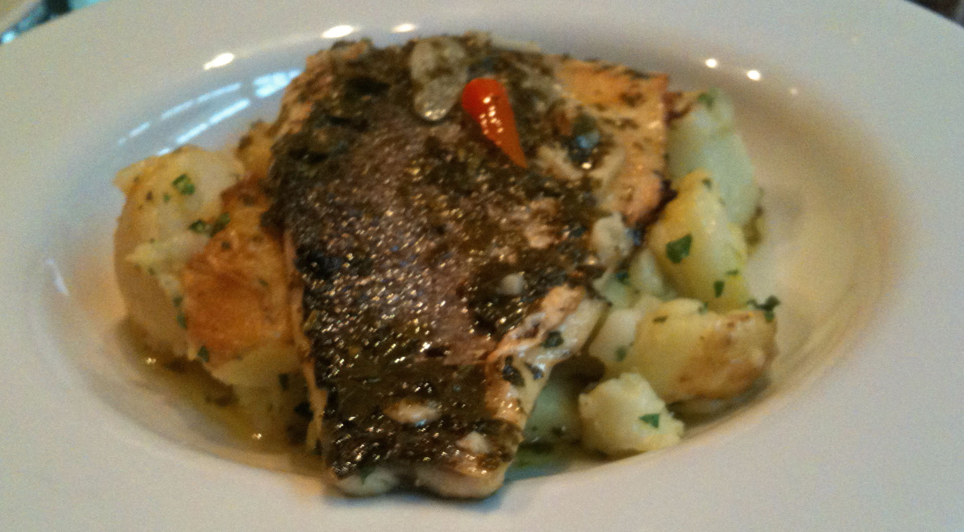 Filetto di branzino al verde (Fillet of sea bass with green sauce)