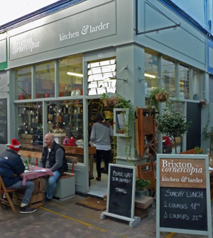 This was a small restaurant but it has grown and grown into the surrounding shops and now has more than 30 spaces. Also acting as a deli, Cornercopia uses locally sourced products not just including buying from the market but also foraged from local allotments. Even the honey comes from South London bees although we have no idea how they can be certain they haven’t made it across the river.