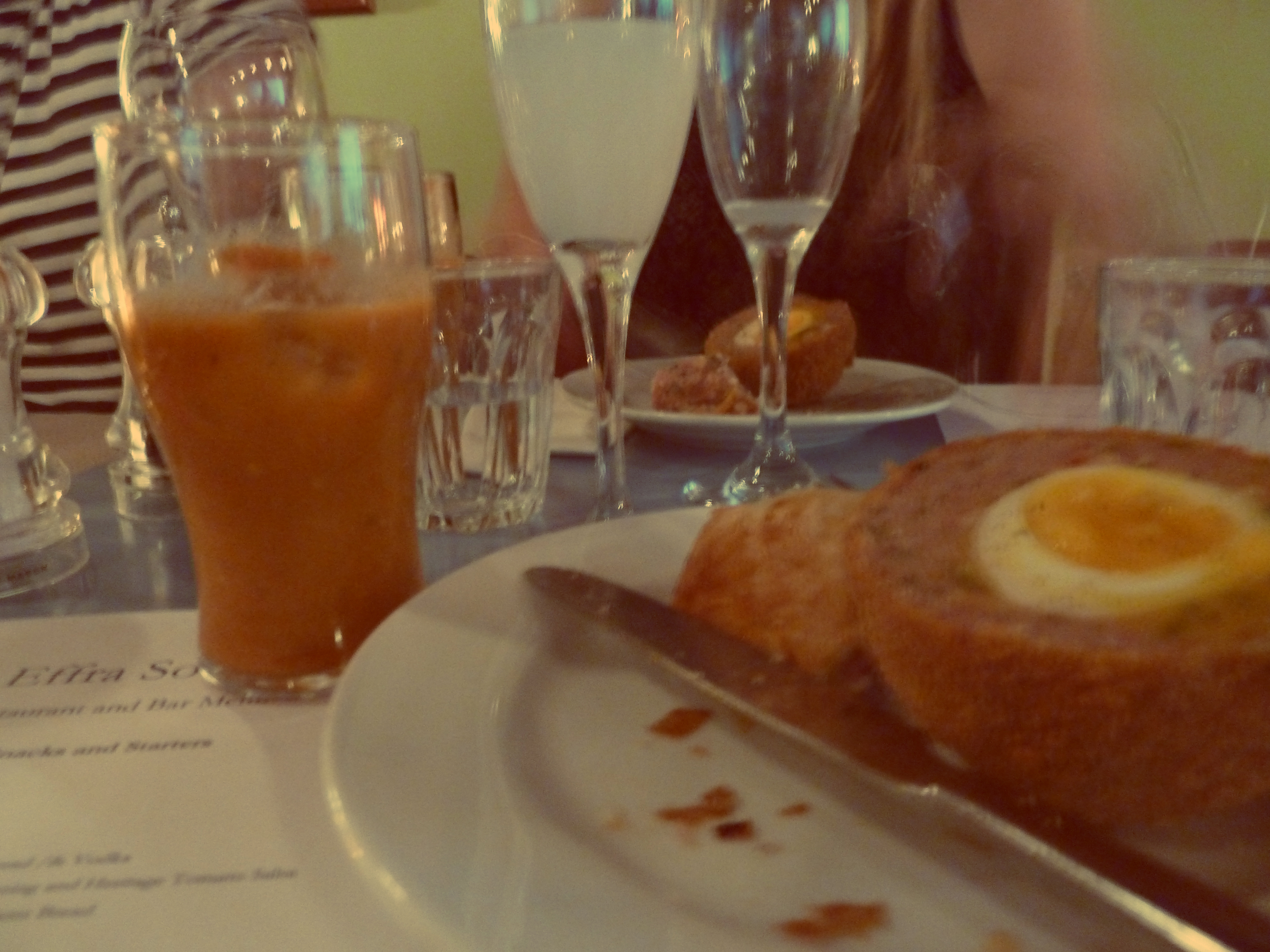 In total we had everything on the menu, apart from the salmon and the steak, trying our hand at about 15 different dishes. Only towards the end did we figure out that we should just have a spoonful of everything rather than trying to load our plates up with every single new dish. In terms of the food this is slightly higher than what you would usually expect from a bar. From homemade Effra cheese, to the biggest scotch eggs I’ve ever seen and baked feta and delicious fresh pasta, they’ve clearly put a lot of thought and effort into making this not only a drinking destination, but a food one as well. Our favourites from what we tried included the feta, the wild mushrooms and gorgonzola arancini, the fresh pasta with light and flavourful tomato sauce, the gazpacho served in a tall glass and finally the crème brullee.