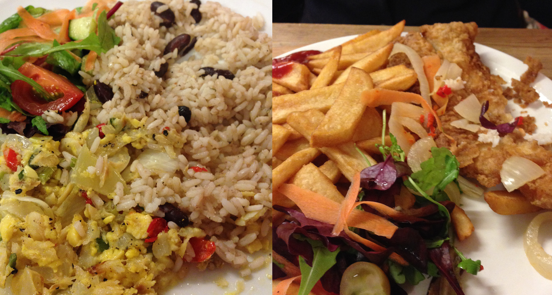 It still looks a like a work in progress but perhaps that is what a pop-up restaurant has to feel like. The interior is bright and cheerful with a new mural of giant fishes. We think the menu has changed a bit and the food has certainly improved. We chose the fish and chips, and ackee and saltfish. The fish was definitely in Etta’s tasty batter (light with some pepper or cayenne) and all the chips were crispy. The ackee and saltfish came with rice and peas making it a truly Caribbean restaurant. There was not much ackee and not much saltfish and quite a lot of onion but was nevertheless tasty. Perhaps not a patch on homemade.