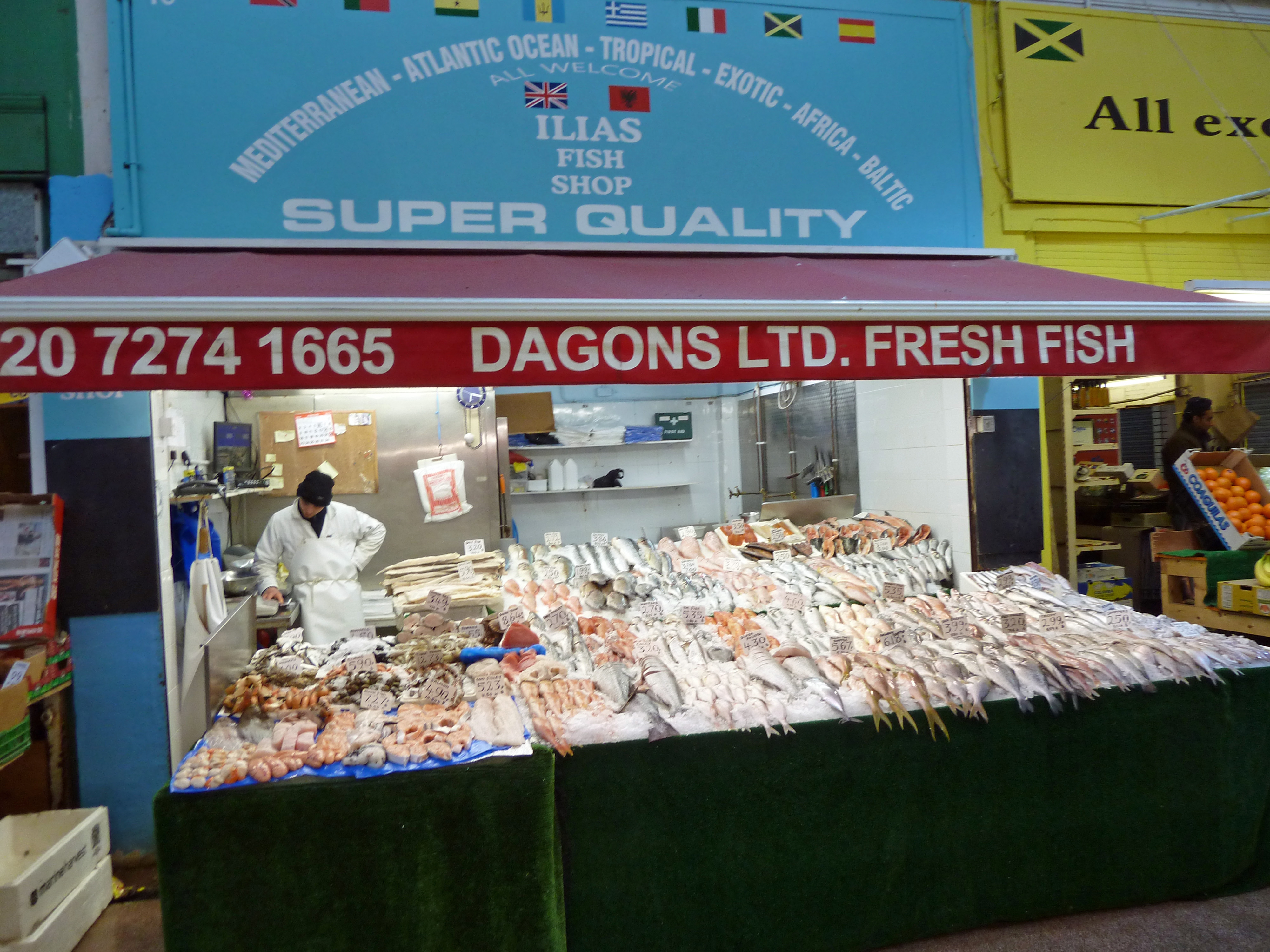 Ilias Fish Shop, 16 First Avenue, Brixton Village: – This is the one I have tended to use the most. It used to be called Dagon’s and there was a minor kerfuffle on Urban75 when long-time owner Gareth moved on – see here. But it still offers a good selection and seems to be just as busy, if not busier, than ever.