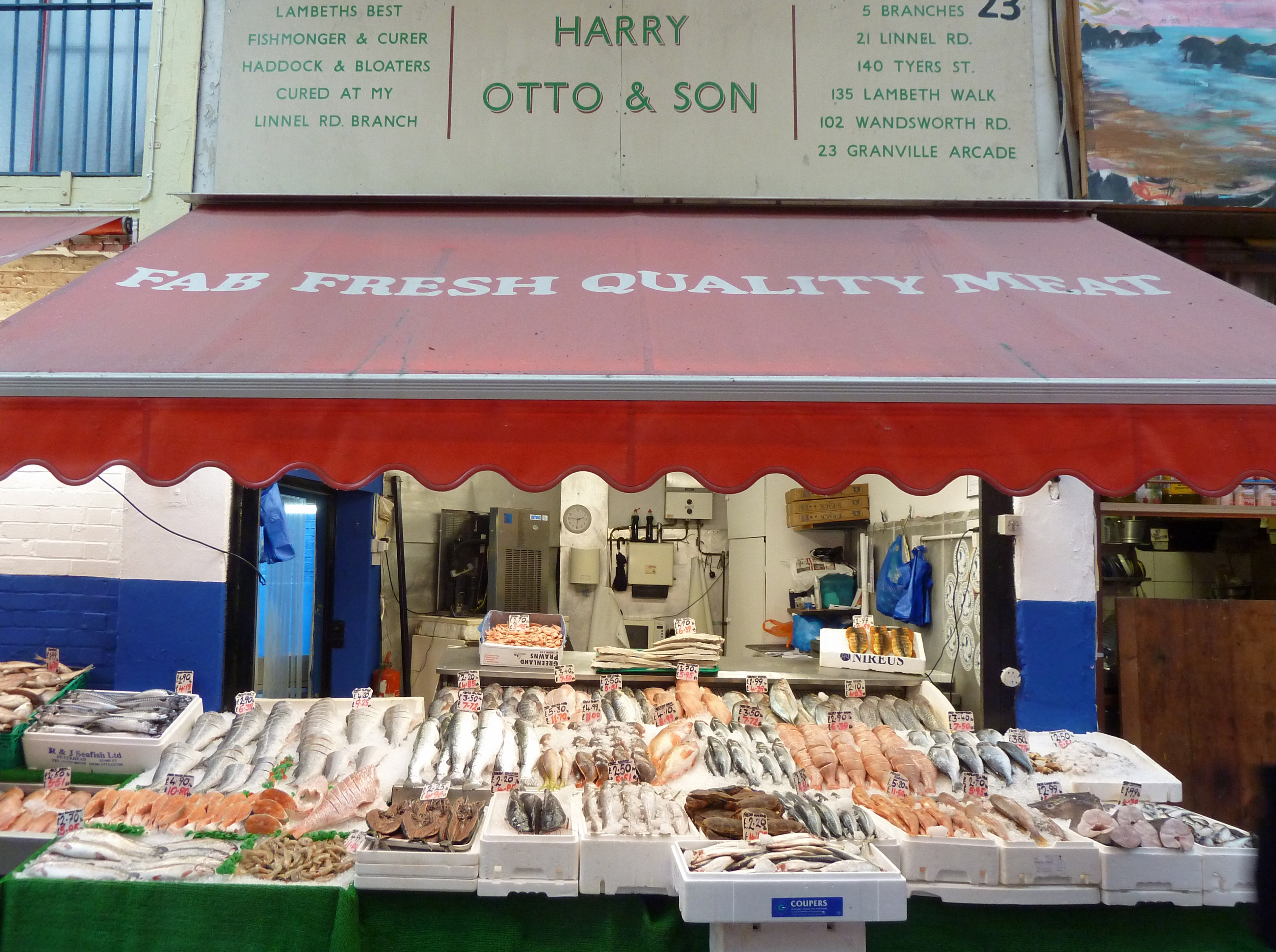 Harry Otto & Son, 23 First Avenue, Brixton Village: As can be seen from the facia above the shop, this used to be one of a chain of shops across the north of Lambeth. But this is now the only surviving example, which simply goes to illustrate how Brixton is a special case. I’m not even sure it’s still Otto & Son as a inconspicuous note on a blackboard declares it to be “L&J Fish Shop”. Of the four this is the one I use the least but that’s more out of habit than anything specific I’ve got against it. This and Ilias are generally the cheapest.