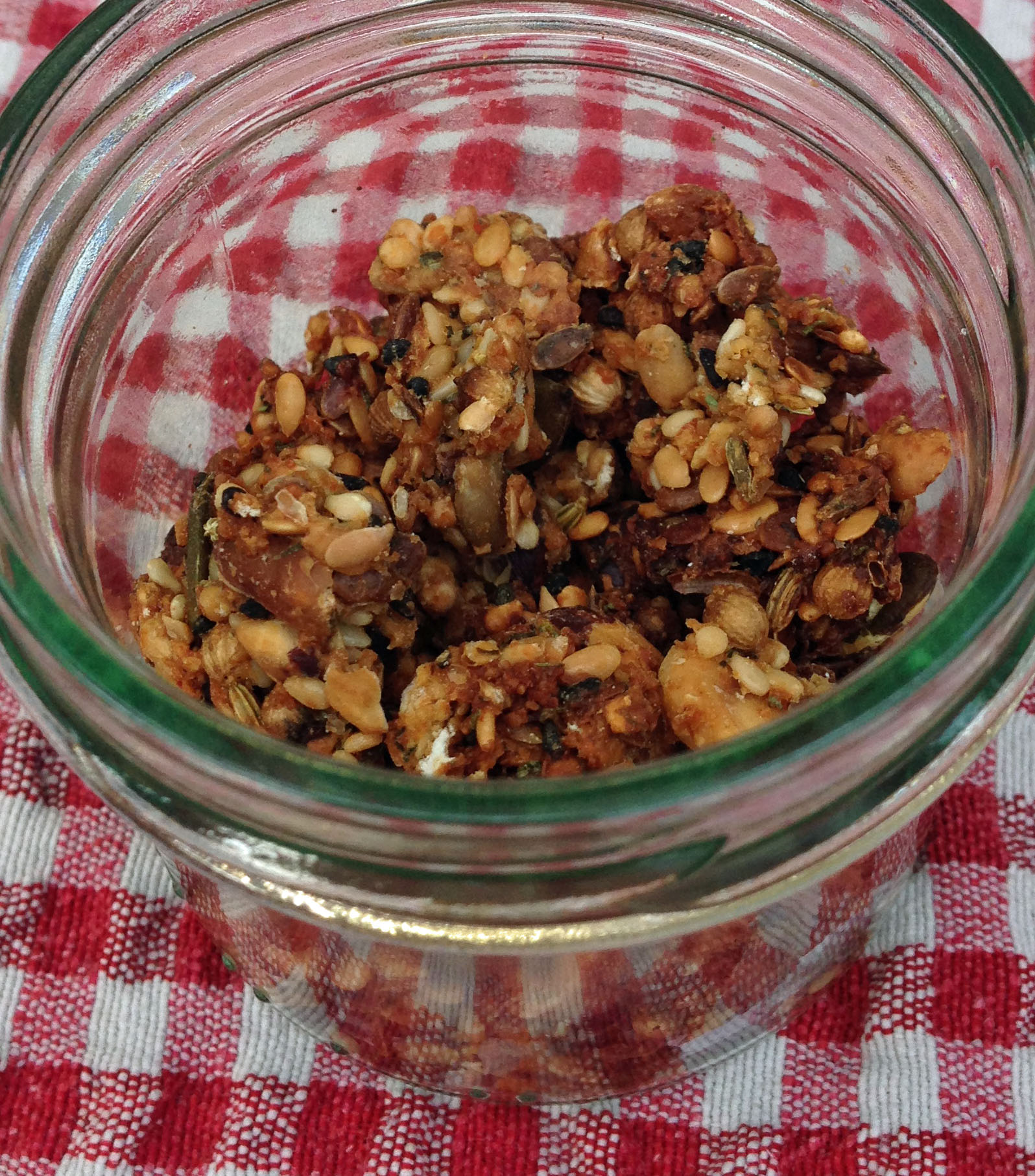We washed all this down with a real ales – Stiff Upper Lip which is a pale ale and Lambeth Walk which is a traditional porter, so dark and flavoursome. These came first and we sipped them with the chef’s own homemade savoury granola.