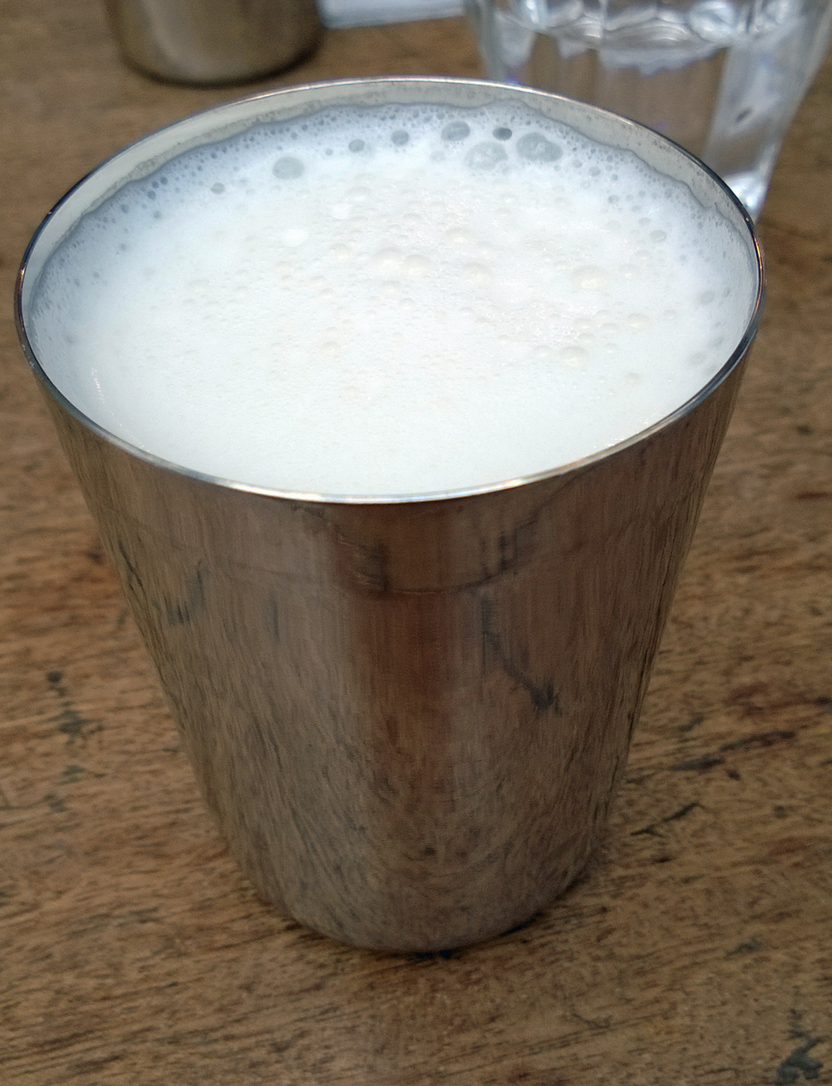 Each dish comes like a thali on a steel tray with little pots of sauces and pickles. One of the interests is working out which sauces are which from the menu, which is not always easy, even for the waitress. On the right is the one with the potato filling but, unless you dig in it’s difficult to tell. The dosas are the large pancakes made from coconut, rice batter and black lentil flour. You may have had the paper thin ones but these are more substantial, thicker and whichever one you choose they come covered in a sambal sauce made of spicy lentils and onion. Then comes the yoghourt, chilli and tomatoes relish, some homemade chilli which is a little pile on the plate and tastes nutty as well as a little hot. There are other sauces and salads – not remotely like the ones that accompany a takeaway that usually remain in the little plastic bag. These salads were small and delicately flavoured. Both our choices are accompanied by two idlis which are also from the South of India and we tried a lot of them in Kerala. They are made from fermented black lentils and are usually little soft cushions served with a variety of sauces. They are also definitely something to eat in a restaurant as they are ferociously difficult to make, mainly because you need to think at least a day ahead to get enough time for the fermentation process. The ones served by Papi’s Pickles are somewhat flatter and heavier than our memory of the Indian ones but with that hint of fermentation that is suggested to increase its digestibility – who knows but they certainly brought back memories of the heat and the waterways of Kerala.