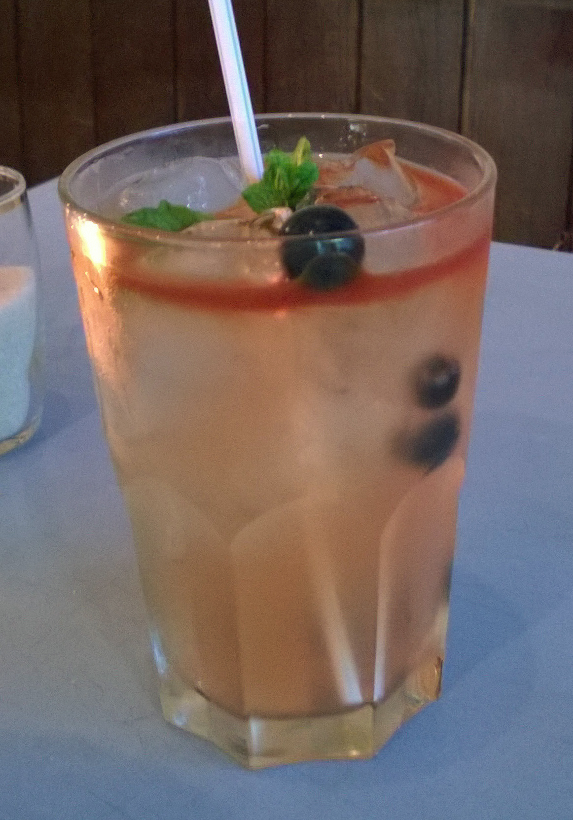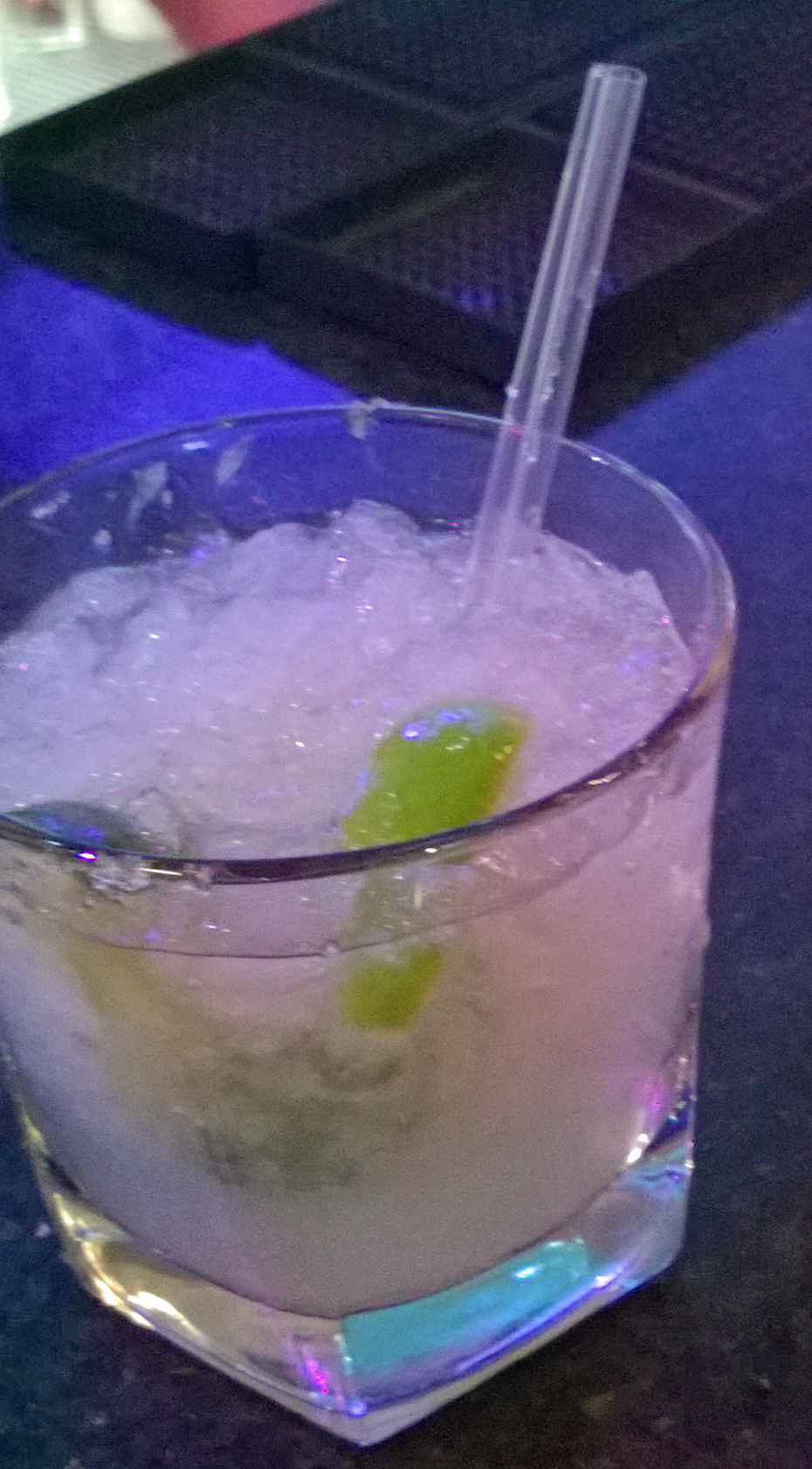 6. Satay Gallery (see our full review here) (http://www.sataybar.co.uk/) was hopping on a Saturday night mostly with groups of young women and a few couples. It was our cheapest venue and we stood at the bar rather than waiting for a table. My drink was very popular and so I didn’t need to read any menu – it was sort of wobbly anyway – I could just point to “one of those”. It was a sort of liquidised strawberry blancmange with a kick called a Pink Paradise (white rum, Malibu, strawberry liqueur) and if memory serves me (I wasn’t depending on it at this stage) I enjoyed it. It also provided part of my five fruits of the day in a piece of pineapple on the side. The other drink was a Caipirinha (rum, lime and sugar over crushed ice) – refreshing but a bit too sweet and not enough to stop the insomnia from the prior Expresso Martini. The list of cocktails is really long so no problems with choice here. Although the place was pretty full, the service was really fast and standing at the bar you can see their efficiency with the bar manager keeping an eye on the drinks going out and the empty glasses needing filling. We have heard that other bars in Brixton take a very long time and often forget the whole order – this place certainly wouldn’t. The atmosphere was good and, despite the bouncer on the door, we felt it was a great place to relax.