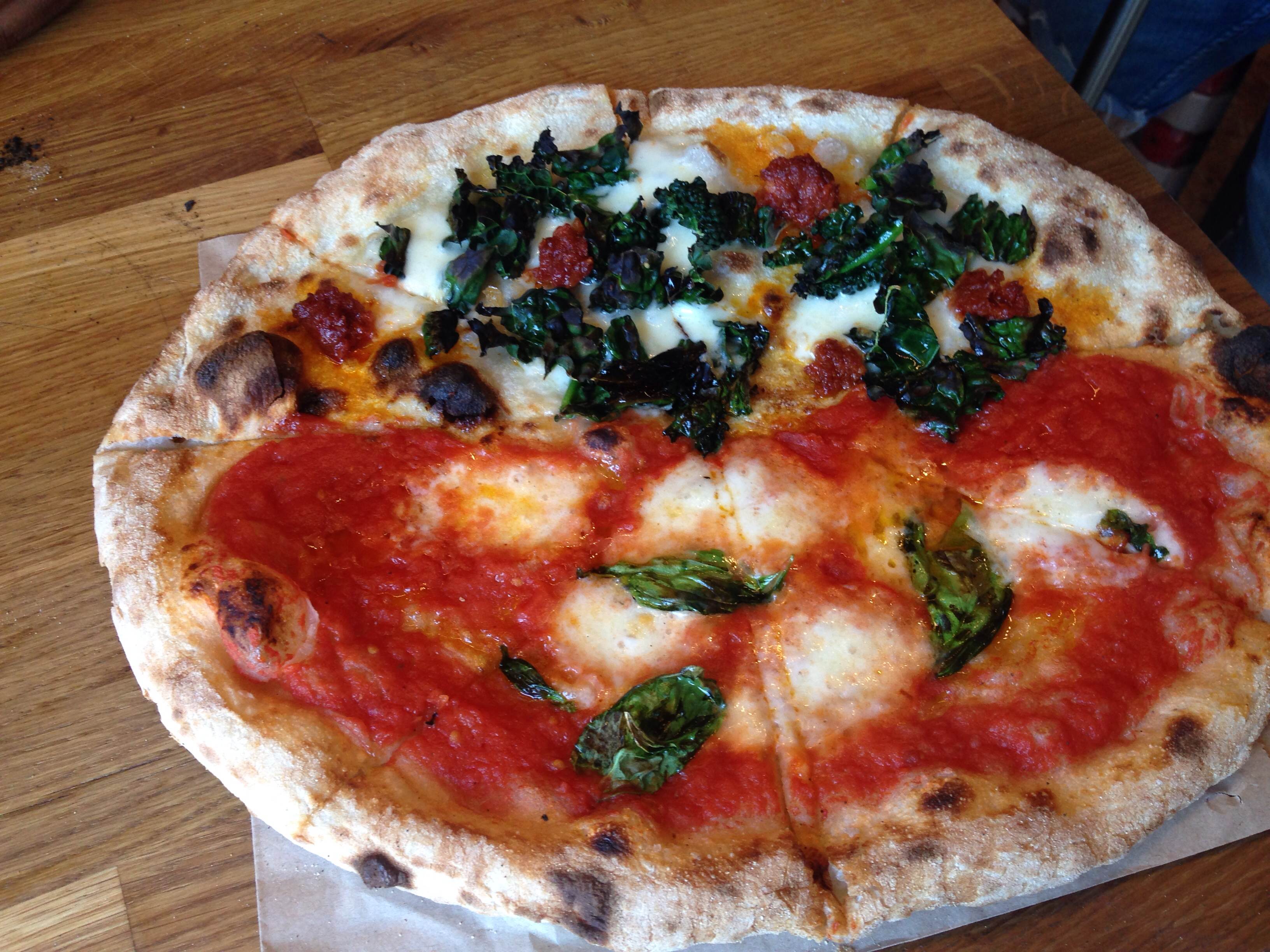 We then sampled pizza from Made of Dough, half and half of Rossa and Bianca, with added kale! Also good to note that this place accepts cards and the pizza is delicious. We washed that down with beer from Khrombacher which also sell pretzels.