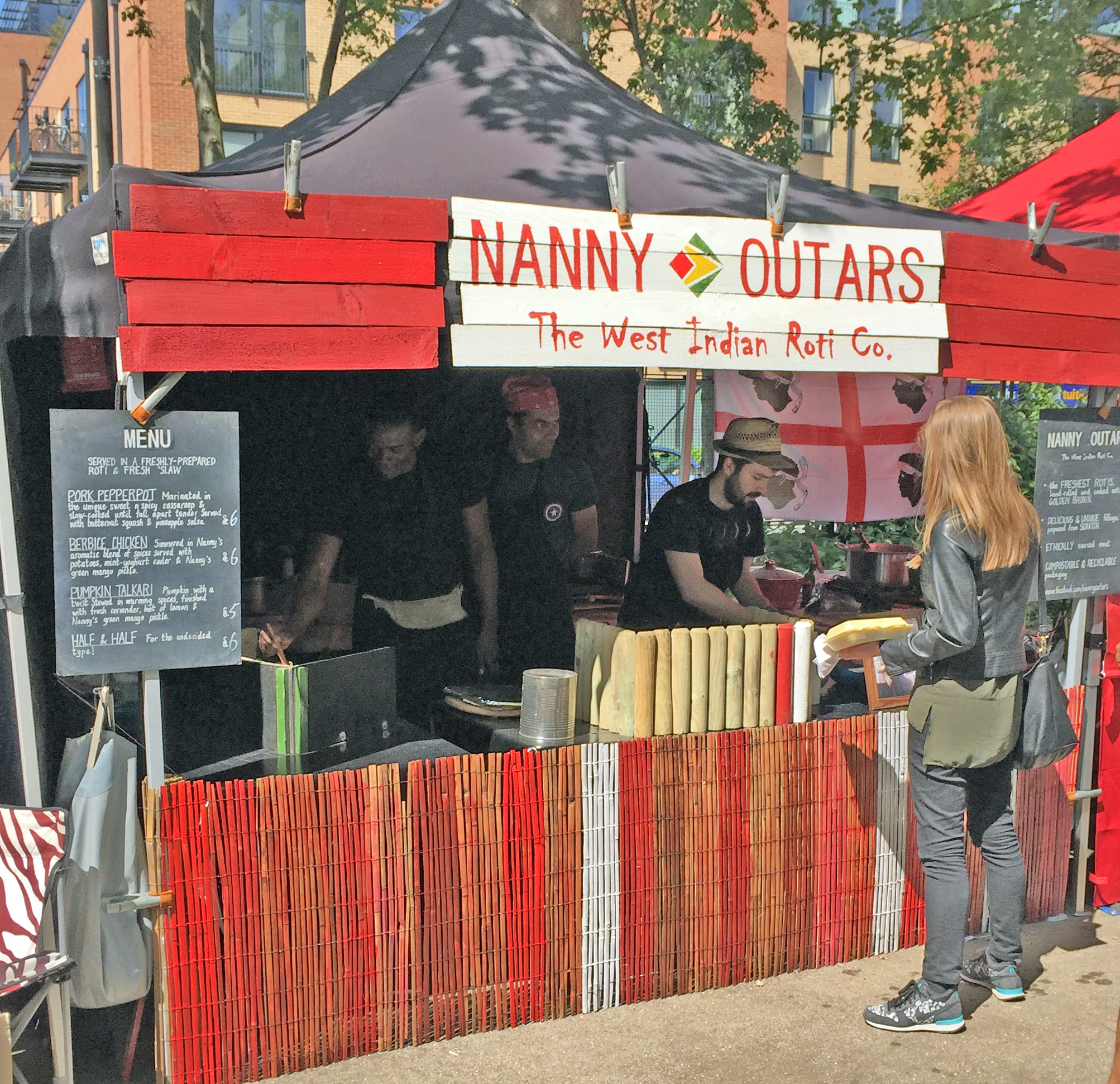 This market lies just opposite Brixton Village and the erstwhile laundry. It is hard to miss as it is in the open space in Coldharbour Lane with the famous anti-nuclear missile mural. It seems to be run by the same people as the night market and so isn’t so much a market as a set of food stalls, extending the offering of Brixton at the weekend.