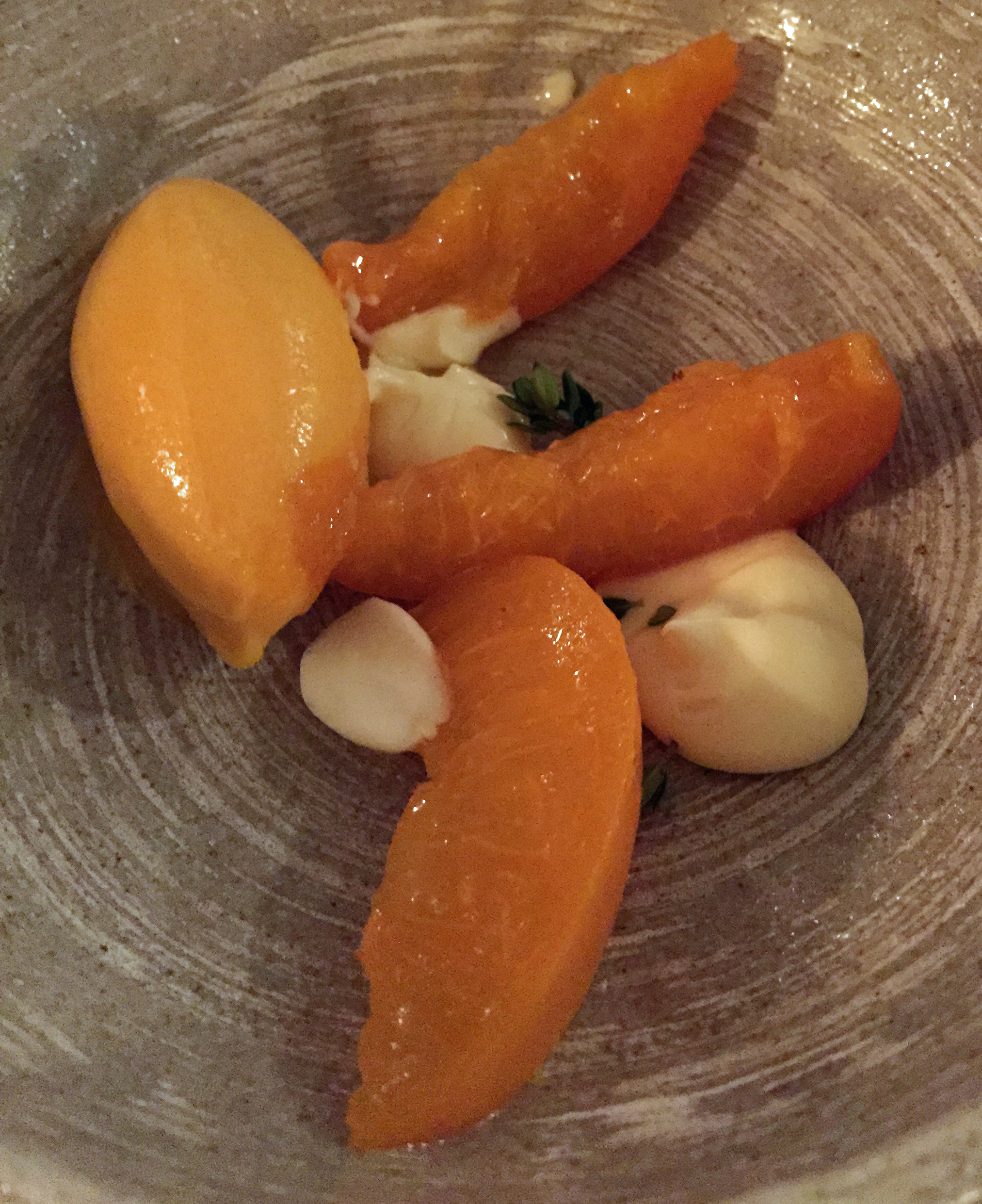 The sea was skate in a dashi sauce with lemon and smoked eel with black garlic and onions. The descriptions are much better than this! We were really impressed by this course both were really different and even though we are not great fans of skate we finished every bit.