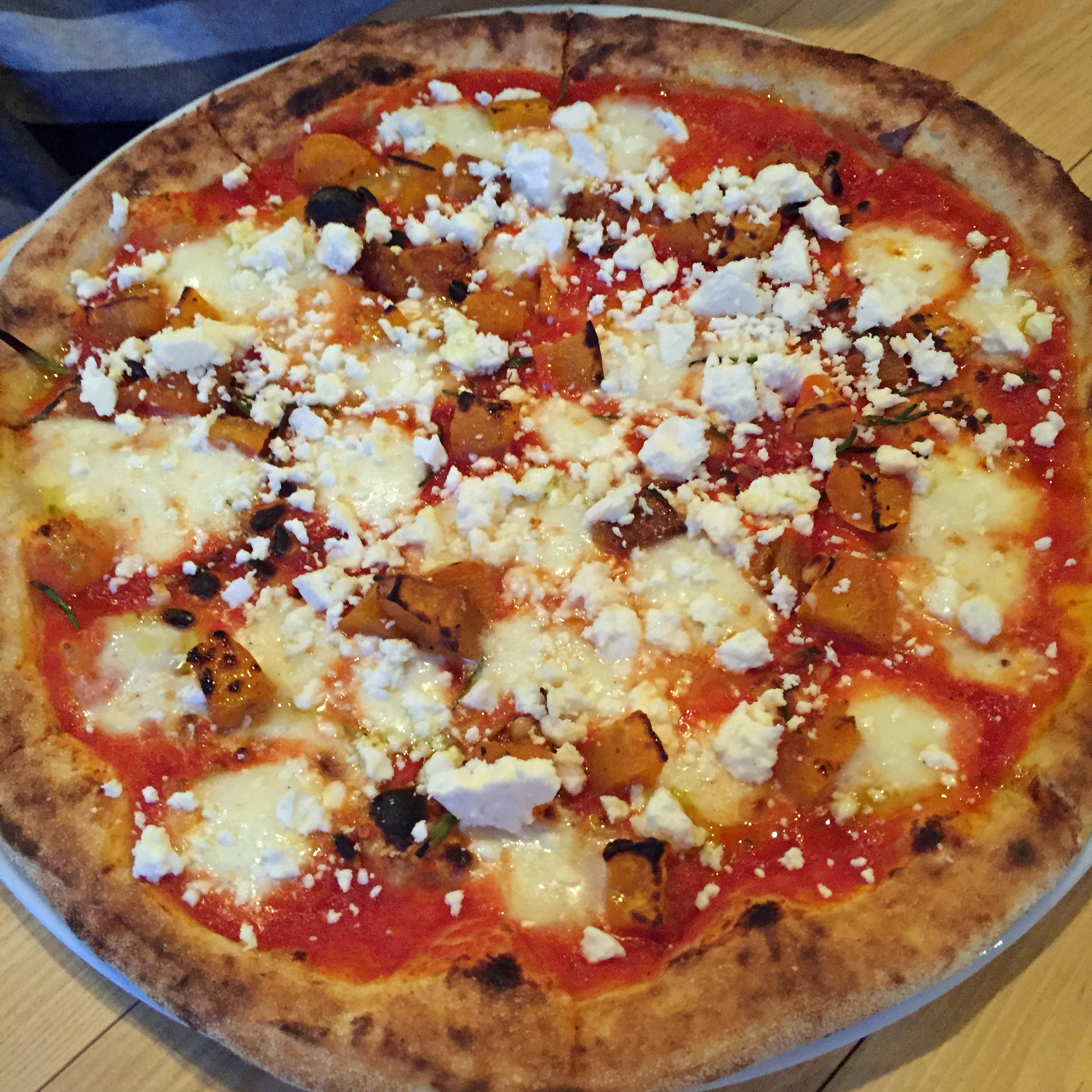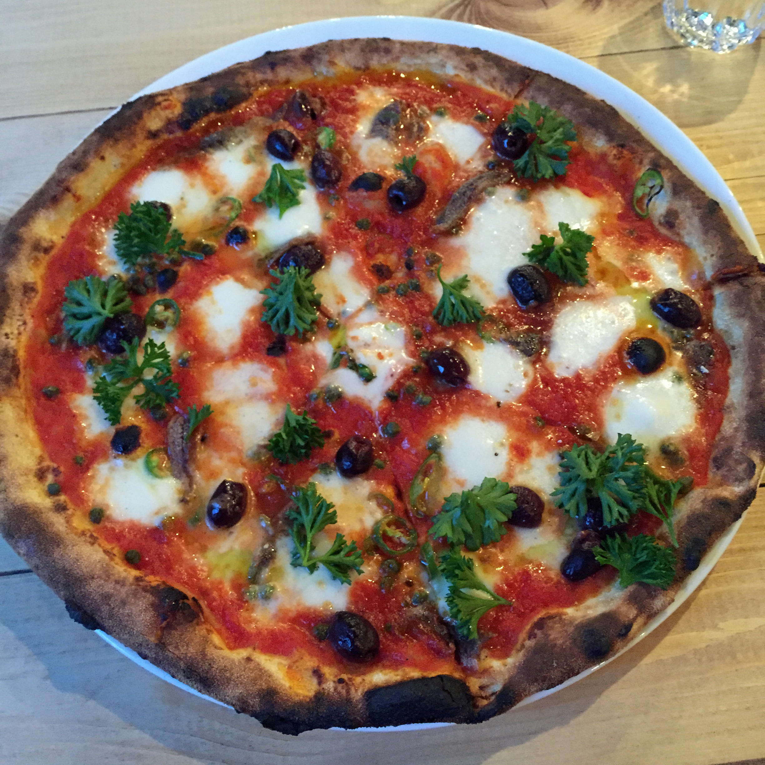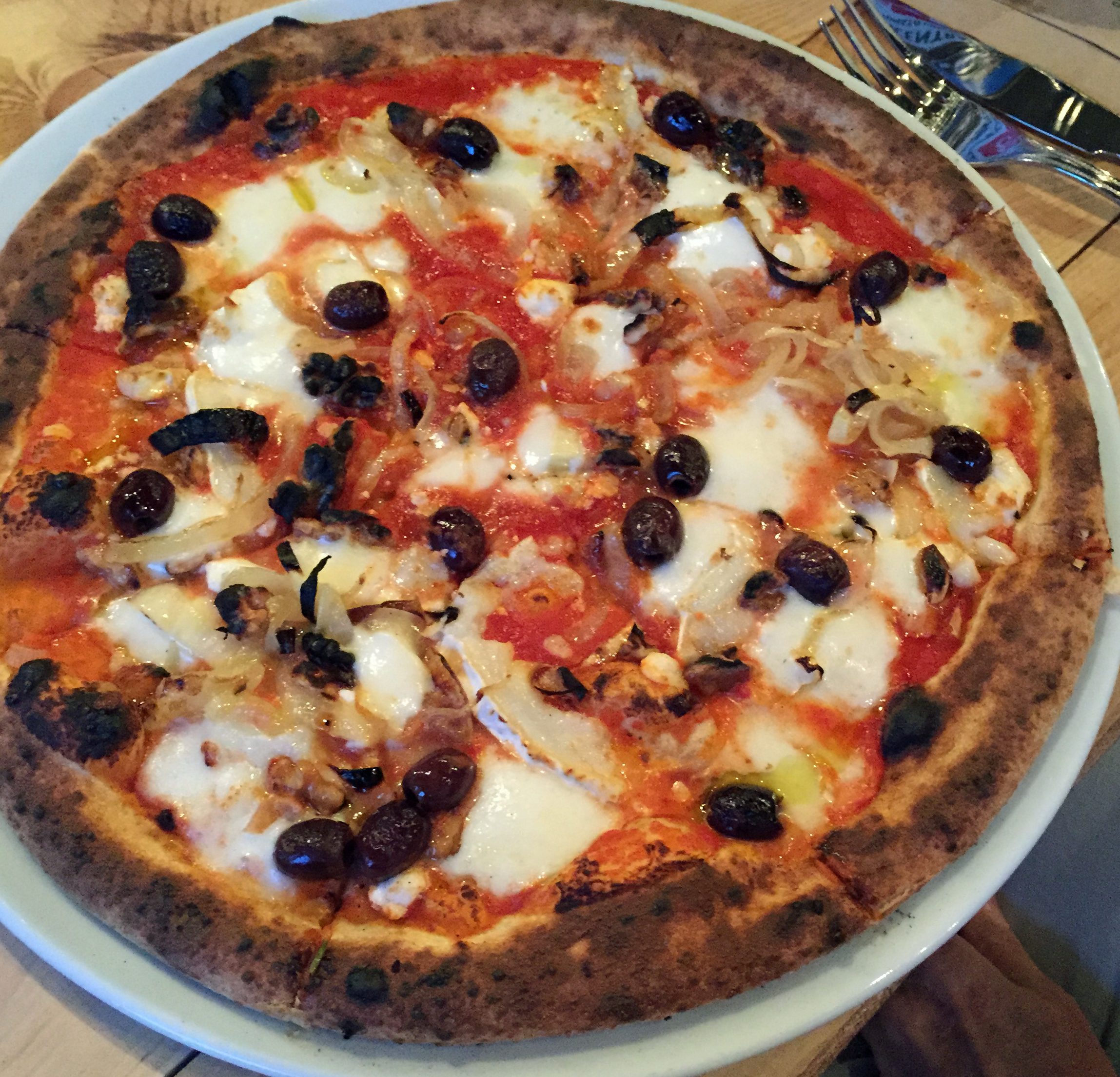 We went for a ‘Winter Goat’ with goat’s cheese, caramalised onions, olives, and walnuts; a ‘Lorena’ with squash, feta, pine nuts, and rosemary; and a ‘Jon Bon Chovy’ with anchovy, chilli, capers, olives, and parsley. They didn’t take long to arrive. The pizzas were great, both tasty and very filling. When they arrived piping hot and altogether and we thought we would never be able to finish them – we did but that left us with no room for dessert.