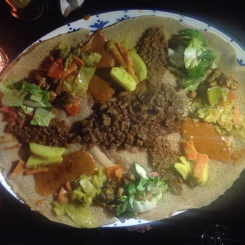 Vegetarian, fish and meat are on the menu – all served on a sour dough pancake, and eaten with your hands. So prepare to get your hands dirty! You can order each dish separately or you can make it easier for everyrone and just go for one of the combo’s. we went for the house Special – Zeret Surprise (combo of kitfo – finely chopped beef, lega tibs – tender land, yebeg fitfit – lamb stew, spiced chicken-tibs – chicken with rosemary and onions, atkilt, shuro and salad.) Unsure on what atkilt and shuro is now…
