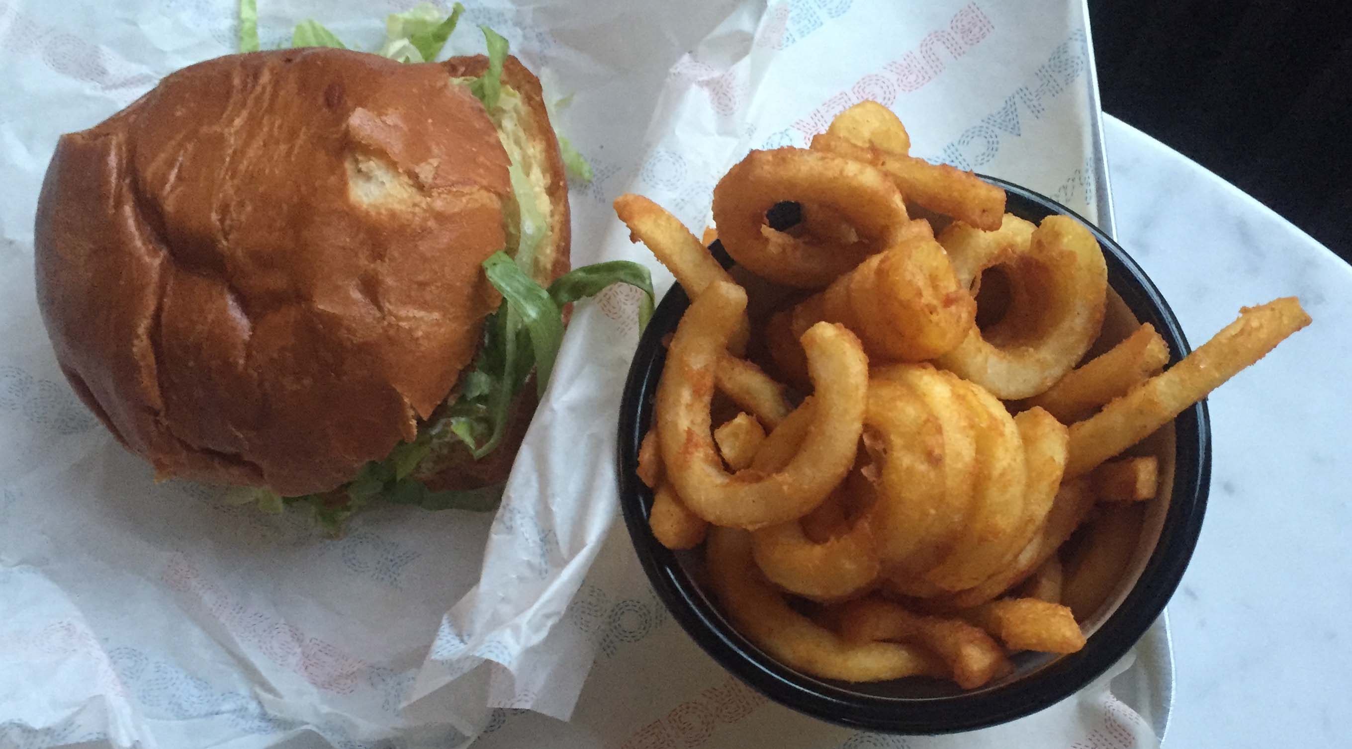 The menu is typical of most of the numerous burger bars in Brixton but the difference is the price, don’t go looking for a cheap meal. There is the usual classic, a streaky version which has added bacon, a veggie (beetroot, fennel, lentil & mozzarella) and a meat feast (Prime British beef burger, ale onions, cheese…. and chilli pulled pork). All come with a sprinkling of salad, so we felt a modicum of virtue and not quite so guilty eating the curly fries.