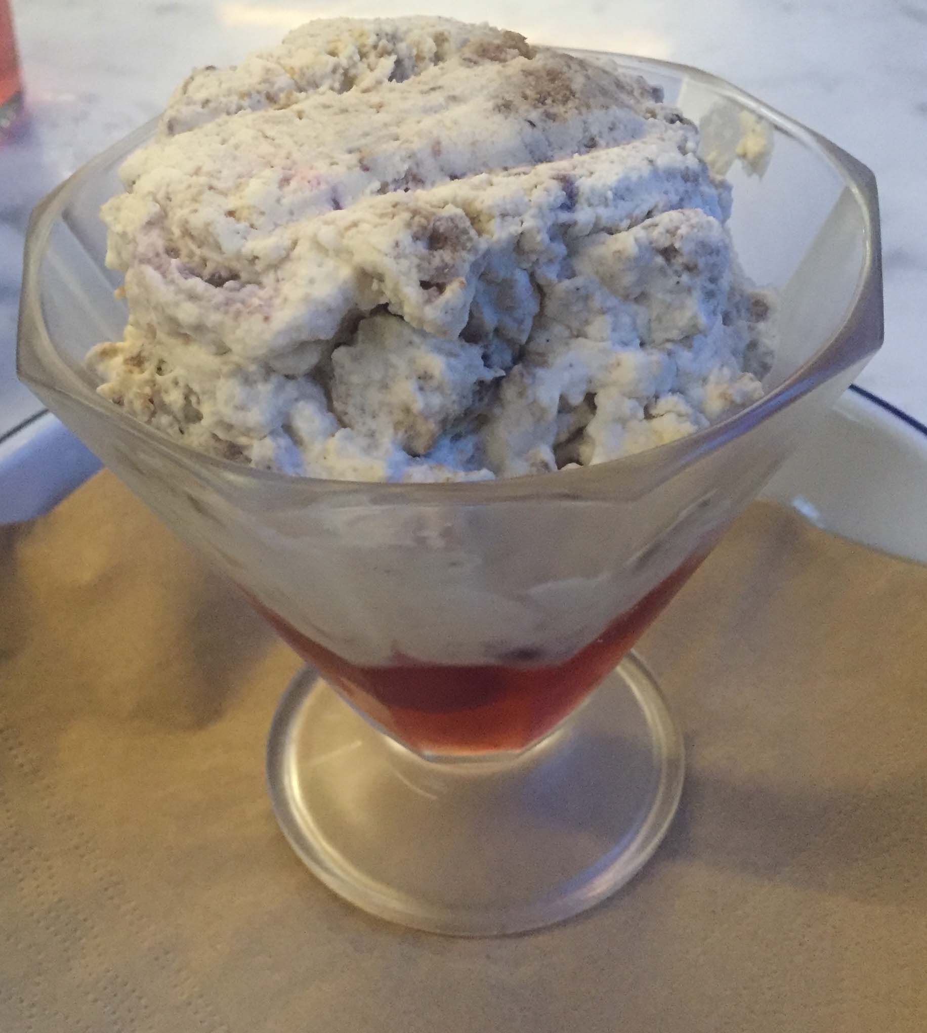 We finished off the meal by sharing what on the menu looked like an interesting dessert – gooseberry and marmalade trifle. In the event it wasn’t interesting and, despite a sweet tooth, we didn’t finish it, even between us. Something of the polystyrene about the consistency and very little taste.