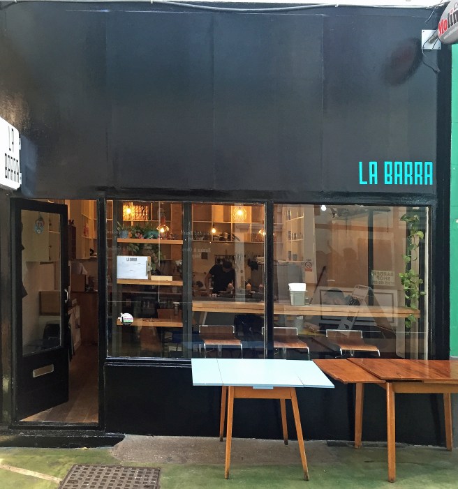 This taco restaurant and bar was taken over at short notice, done up on a shoestring, so you can see the leftovers of Rosie’s, which turned into a Persian cafe and is now La Barra. It opens for a short time – three days a week – and is still so hidden that on a Friday night the place was empty at 7.00pm. The service was friendly and, unsurprisingly given we were the only customers, prompt.