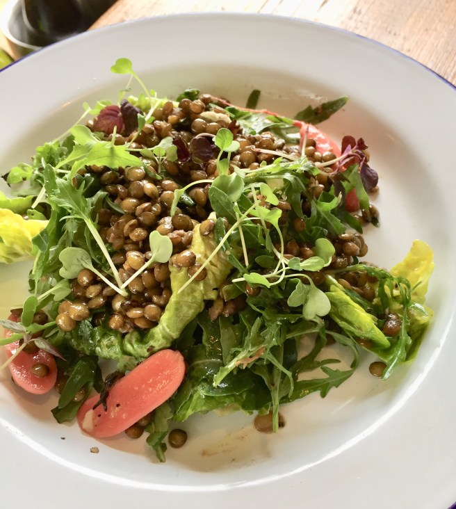 We also ordered a lentil salad and a ratatouille. One of us rated the latter as the best part of the meal, but then he likes anything with aubergine.