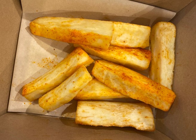 We also ordered a Raja Wrap (veg and salad in a wrap – lots and lots of them). This one was definitely enough for one and a half people, especially when ordered with cassava chips which were big chunks of toasted cassava. I think this may be affected by personal taste, as there was a split decision in our house. My partner dipped them into the sambal and polished off the lot.