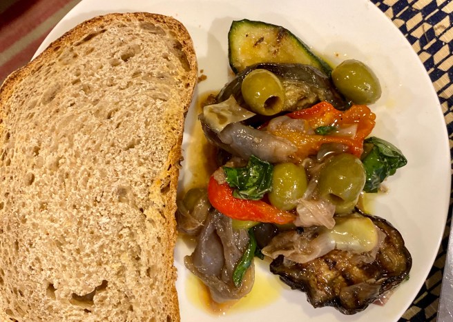 The roast vegetables were great – aubergine, peppers, olives and artichoke hearts with a covering of olive oil. We added salt but apart from that this was a great buy – not least as we had some over to add to another meal. The bread you can see in the photograph of the vegetables is a slice of the fantastic Brockwell sourdough, produced by the Old Post Office Bakery.
