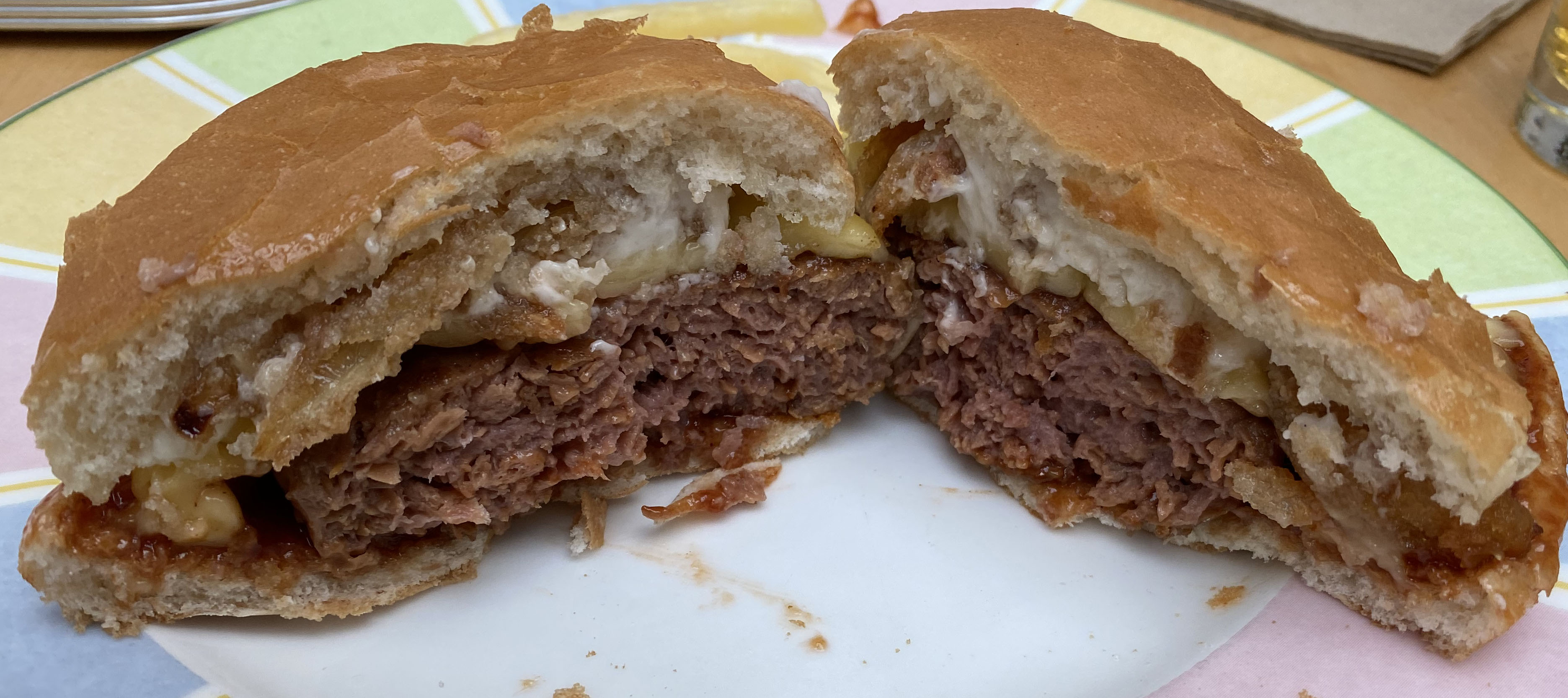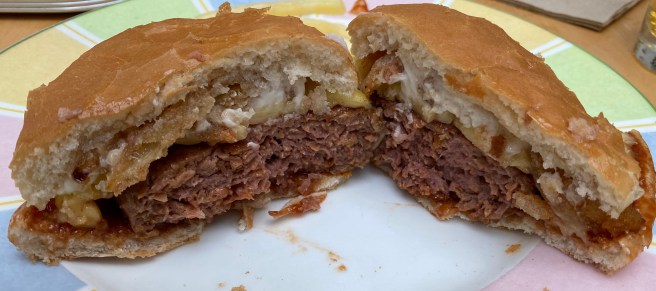 So not a great success, but we were full afterwards, which was the point. The cost – £33.74 via Deliveroo with a tip is a bit steep for a couple of not very special burgers plus chips, but we do want them to stay in business. We will probably leave a revisit for when they reopen and we can eat them fresh from the griddle.