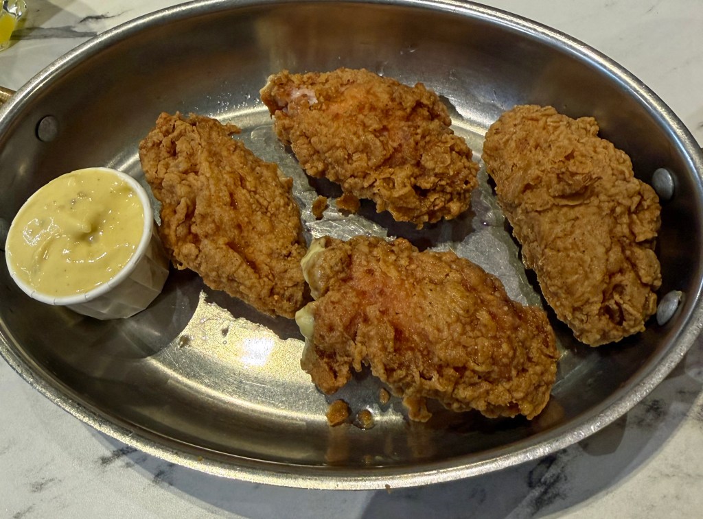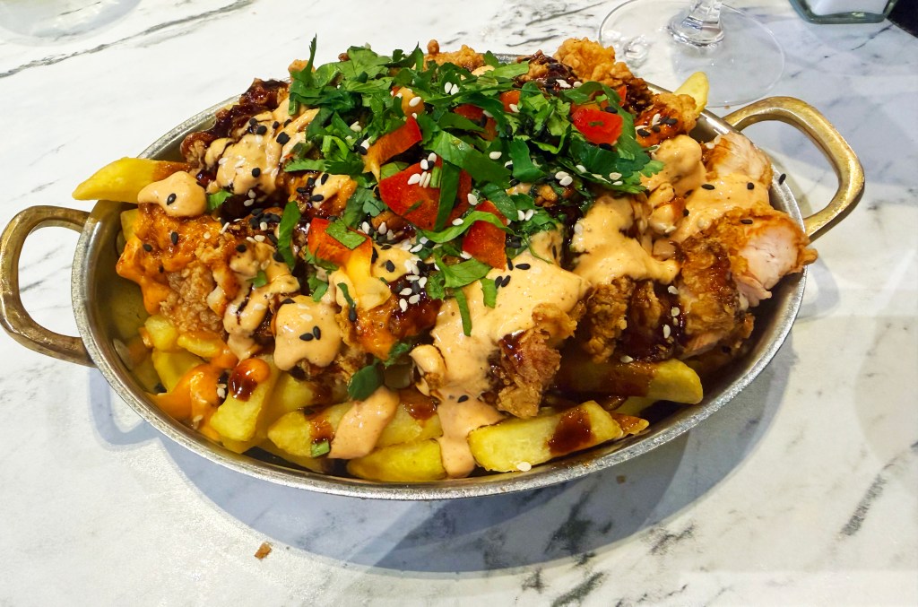 The Korean chicken was really delicious but we might have overdone the cheesy chips – eyes bigger than stomach sort of thing. The chicken wings were coated in a crumb and were not very nice to eat. We had hoped for some crispy skin but it was wet underneath the crumb so our advice is to swerve that one.