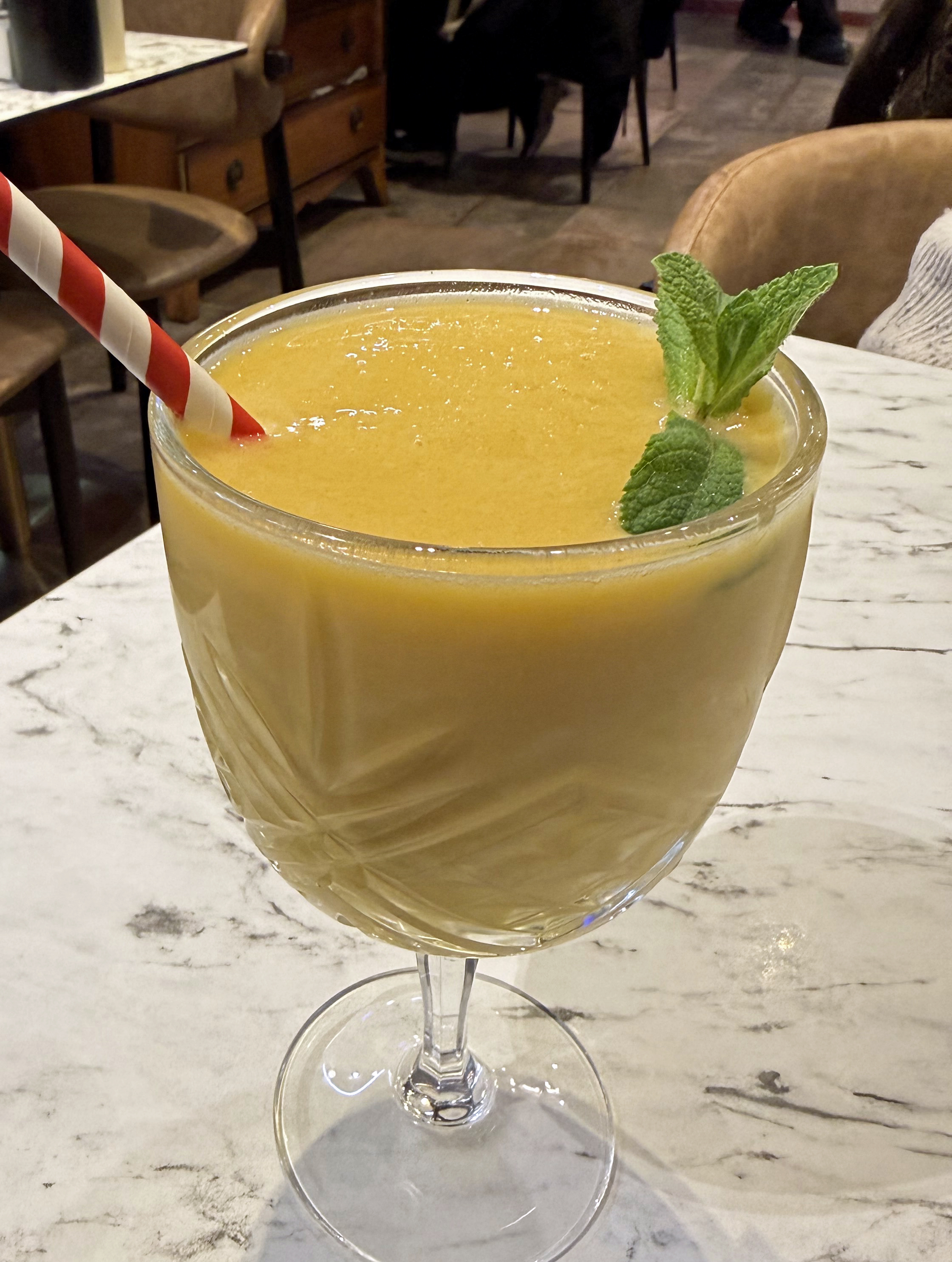 We ordered a Fanta and a “best of passion” a lime, passion fruit and pineapple mocktail. Very nice and only £6.99. The bill came to £50.53 including 12.5% service (not optional). We will return but maybe get a takeaway if we are not wanting to eat at breakneck speed.