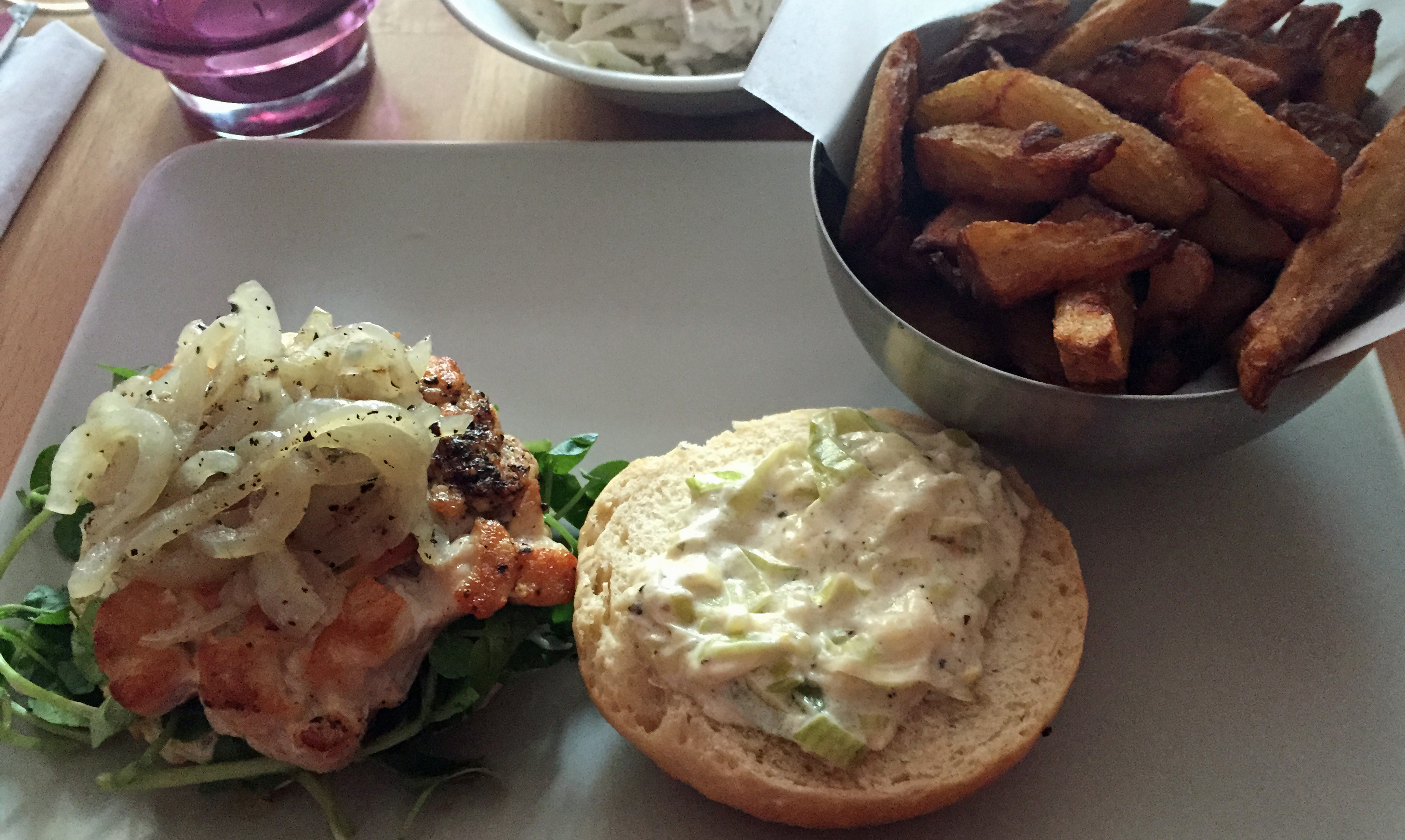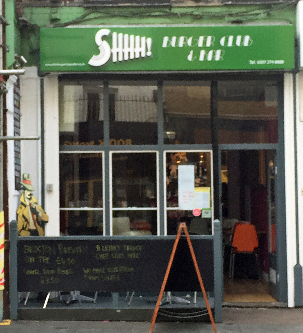 Up to now, whenever we wanted a burger, there has been only one place to go – Honest Burger (see here) – but as part of our quest to keep pace with all the recent openings in Brixton, we decided to see if this had changed. So we visited Shhh one weekday evening when there was little in the cupboard and we wanted some quality family time. This is a comfortable restaurant with mis-matched, but stylish, chairs in the former Duck Egg Café (see here) site. You can sit outside or inside and there is a bar with high stools at the window for peering at the passing scene. A word of WARNING … watch yourself as you go inside. There is a step where you least expect it and two people in our party tripped, as did the next lot.