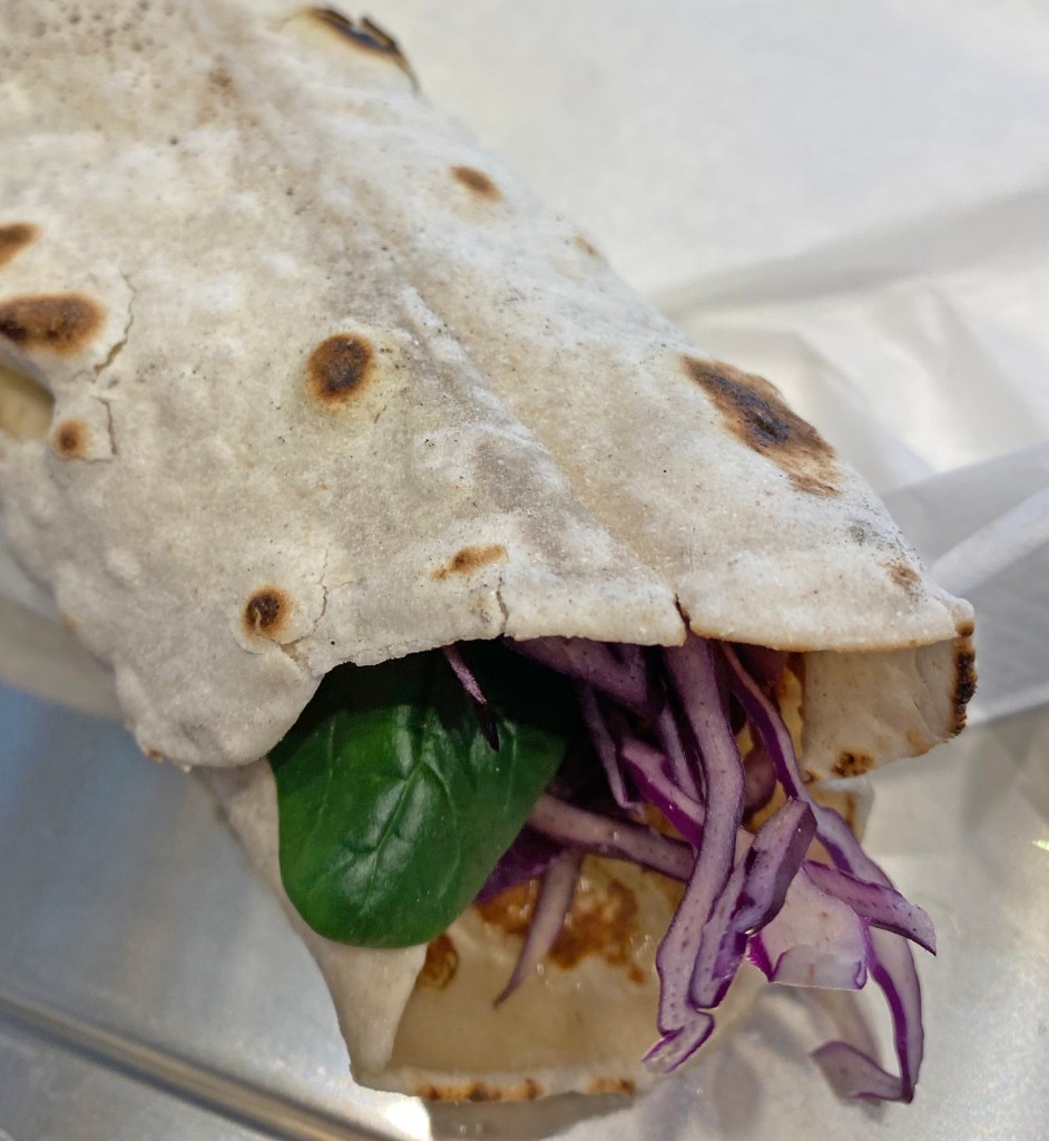 We visited for lunch and the menu is not long on ingredients – it is chapatti central. They offer a variety of ingredients – bacon, egg, aubergine, Brazilian sausage, lettuce, tomato and vegan and vegetarian options. They come with offerings of sauce, a list that is very long, but we spotted beetroot as well as the usual ketchup.