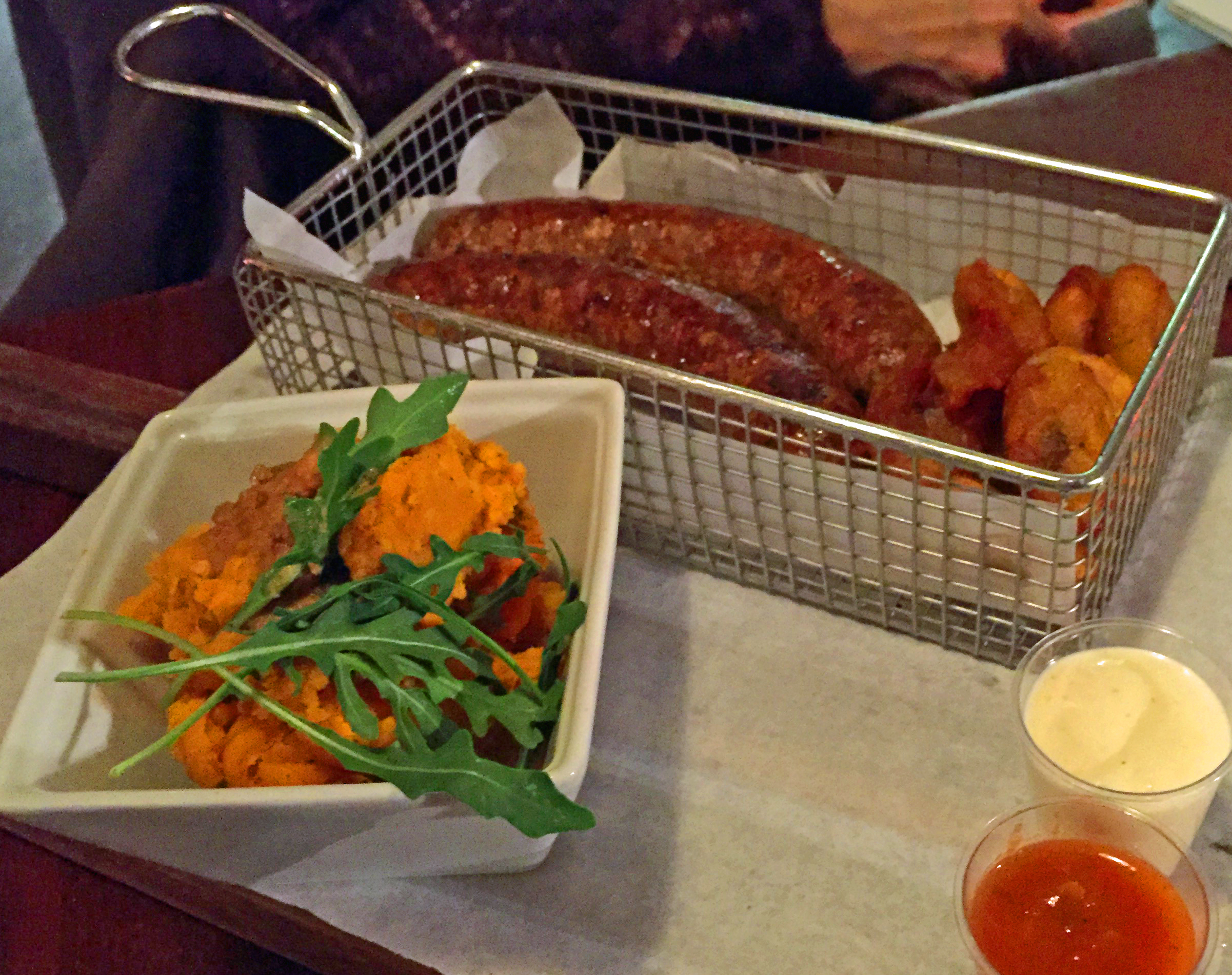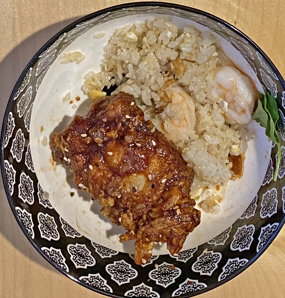 The Korean fried chicken was covered – as they said – in sticky sauce and fingers are required and a lot of kitchen paper and races to wash your hands.