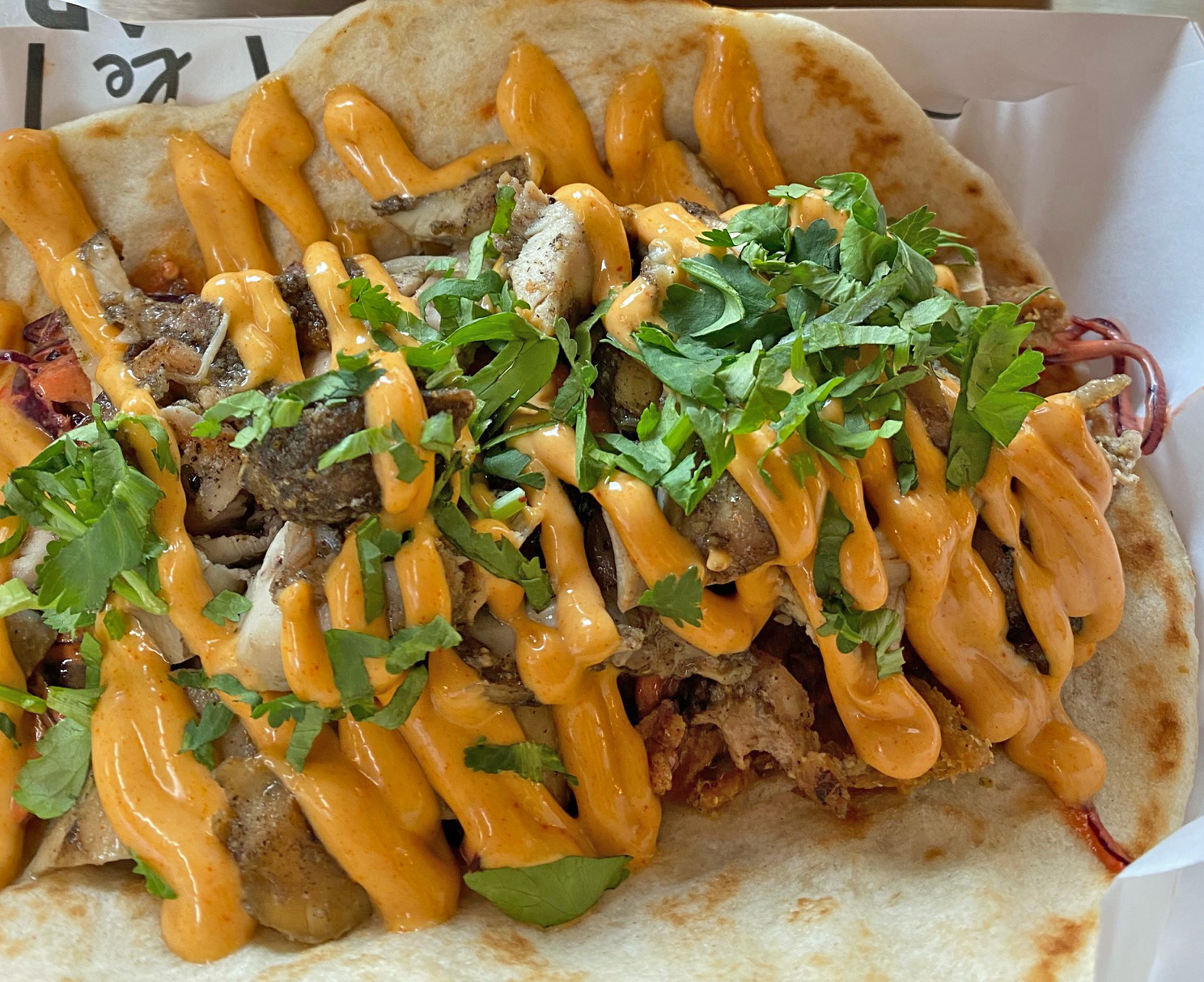 The free-range chicken kebab was equally stuffed and required careful manipulation to make it manageable. Not totally sure what was in there but red onion and fresh coriander were spotted, which helps any dish. No chips with this choice, but there was enough to share with the Dirty Bab.