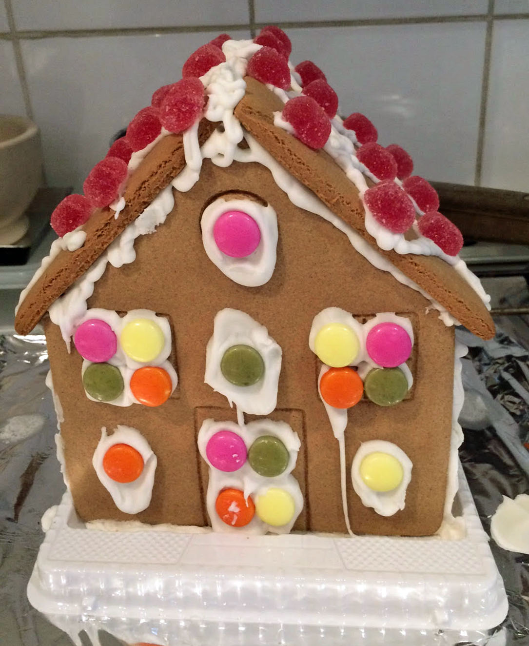 I used to make a gluten free gingerbread house each year, as one of our children suffers from an allergy. Although it taught my children several swear words, when hot syrup dropped onto my thumb, I had to accept that it was never actually eaten. It just sat on the table and collected dust until late January, when it was finally thrown away. So for the last few years I have bought a kit. I had hoped to ditch it this year, but one nostalgic daughter saw a kit going cheap on Christmas Eve when she braved the hell that is Tesco’s shortly before closing time; the saving grace was she put it together.