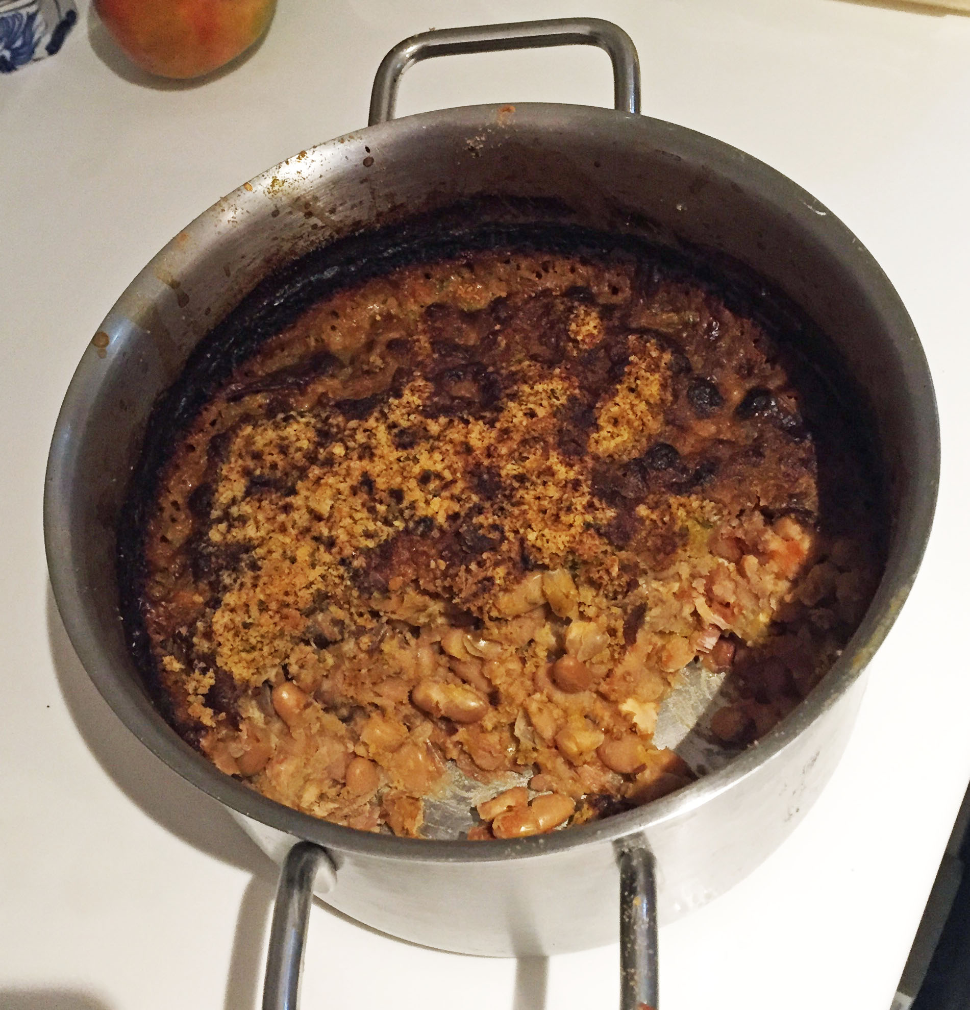 There was even enough meat remaining and, more importantly, both ham and goose stock to make a cassoulet, using the haricot beans from the cupboard. In the end it was not a great success as it was left in the oven too long and, as a result, ended up being much too dry. Next time we will follow Felicity Cloake’s recipe in the Guardian more closely, substituting the leftovers for her ingredients where appropriate. A little went a long way and there’s still some lurking in the back of the fridge.