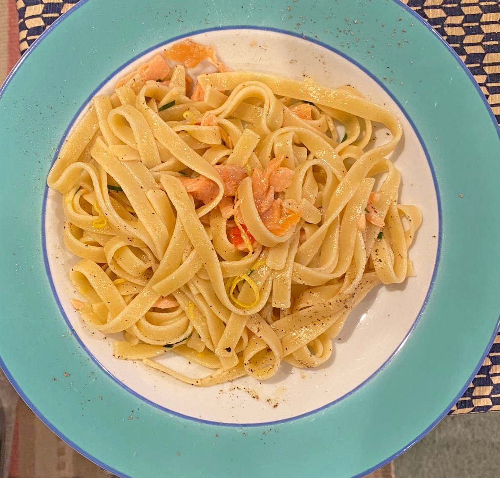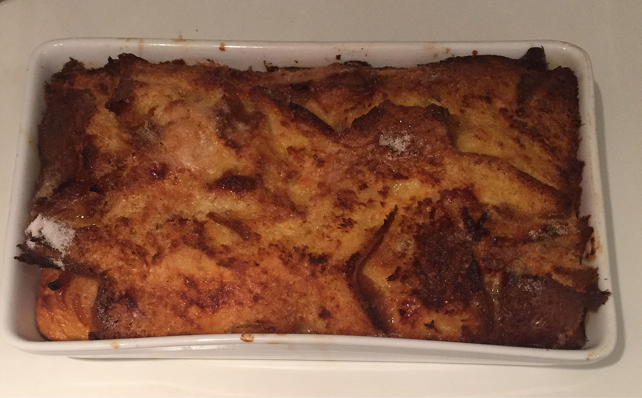 These large bread/cakes are pretty hard to eat your way through and we ended up with quite a lot leftover, even after using it in the Boxing Day trifle (too much like bread to be very successful but no-one minded as it was full of sherry). So next try is a marmalade bread and butter pudding. Layer slices of Panettone with melted marmalade (home made) and custard (4 eggs and a pint of milk). It depends on the depth of the container but three layers is probably enough. The top is sprinkled with sugar and butter so it becomes crisp. Cook in the oven at 180 degrees for 30 to 40 minutes. When taking it out it should wobble in the middle but not be liquid. Serve with cream – double if you didn’t overeat at Christmas and single if you are worried about the waistline.