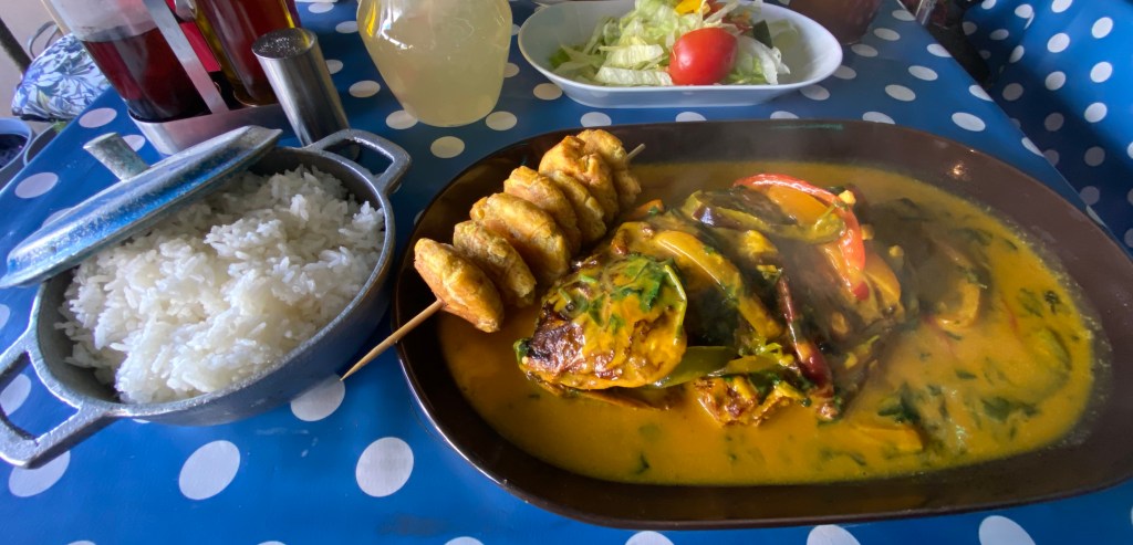 We ordered the green plantain crisps and taquero guacamole for a shared first course. The plaintain crisps are cut lengthwise to provide what looks like a plant. The guacomole was slightly spicy so didn’t hide the flavour of the avocado and we headed into it quickly but the bowl was completely full when it arrived – hence the photo. We would order this vegan dish again.