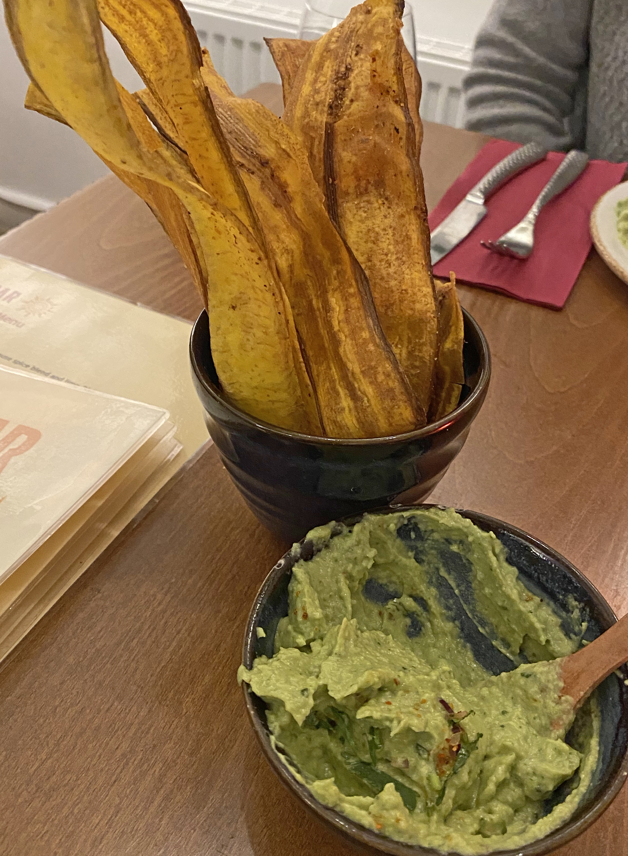 We ordered the green plantain crisps and taquero guacamole for a shared first course. The plaintain crisps are cut lengthwise to provide what looks like a plant. The guacomole was slightly spicy so didn’t hide the flavour of the avocado and we headed into it quickly but the bowl was completely full when it arrived – hence the photo. We would order this vegan dish again.