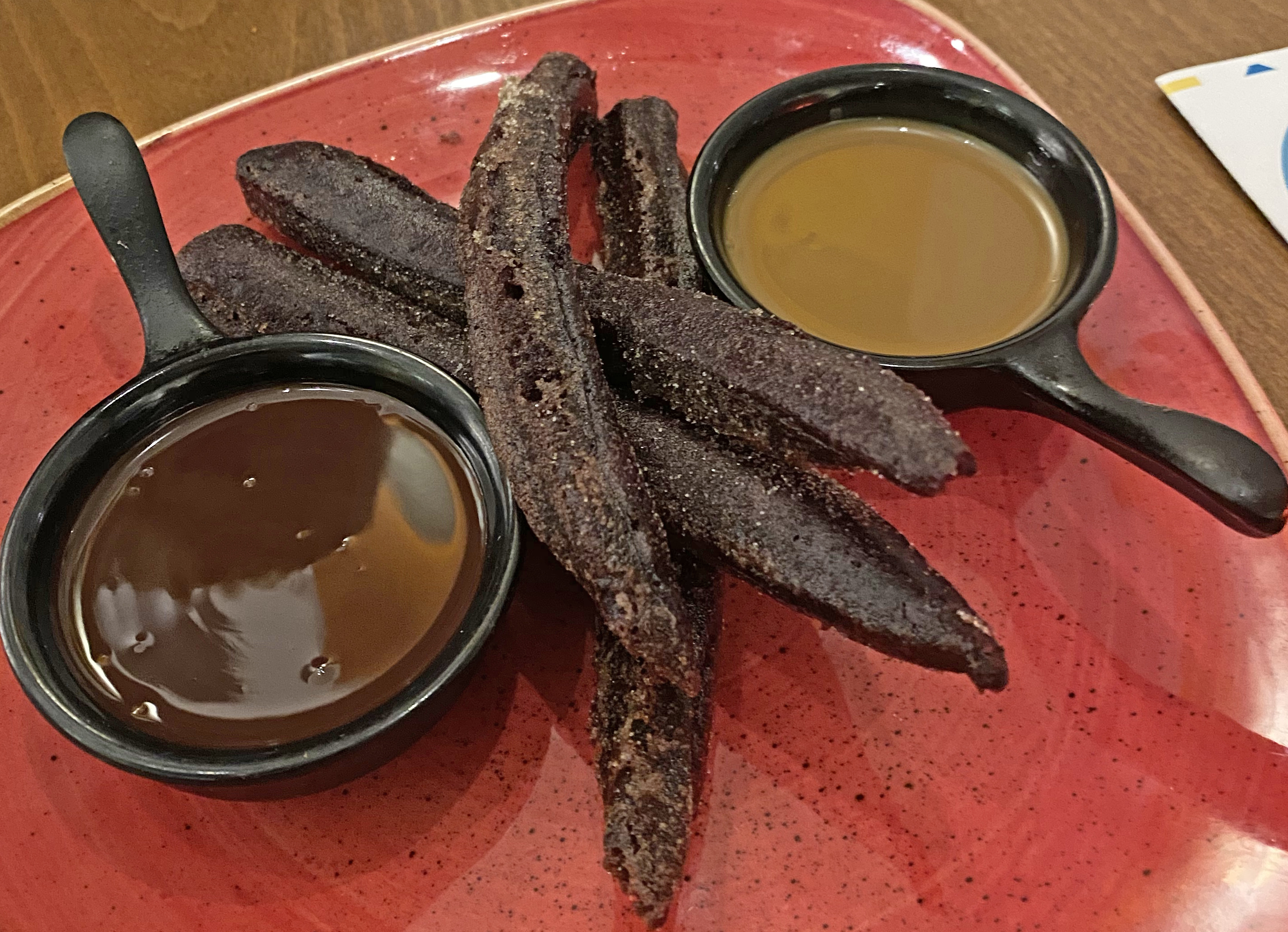 Finally we did have some room for a pudding and ordered Purple corn churros, that comes with two sauces chocolate & ancho chilli sauce and coffee dulce de leche. The ancho added flavour not heat and the coffee was strong enough to feel like a sweet and creamy espresso.