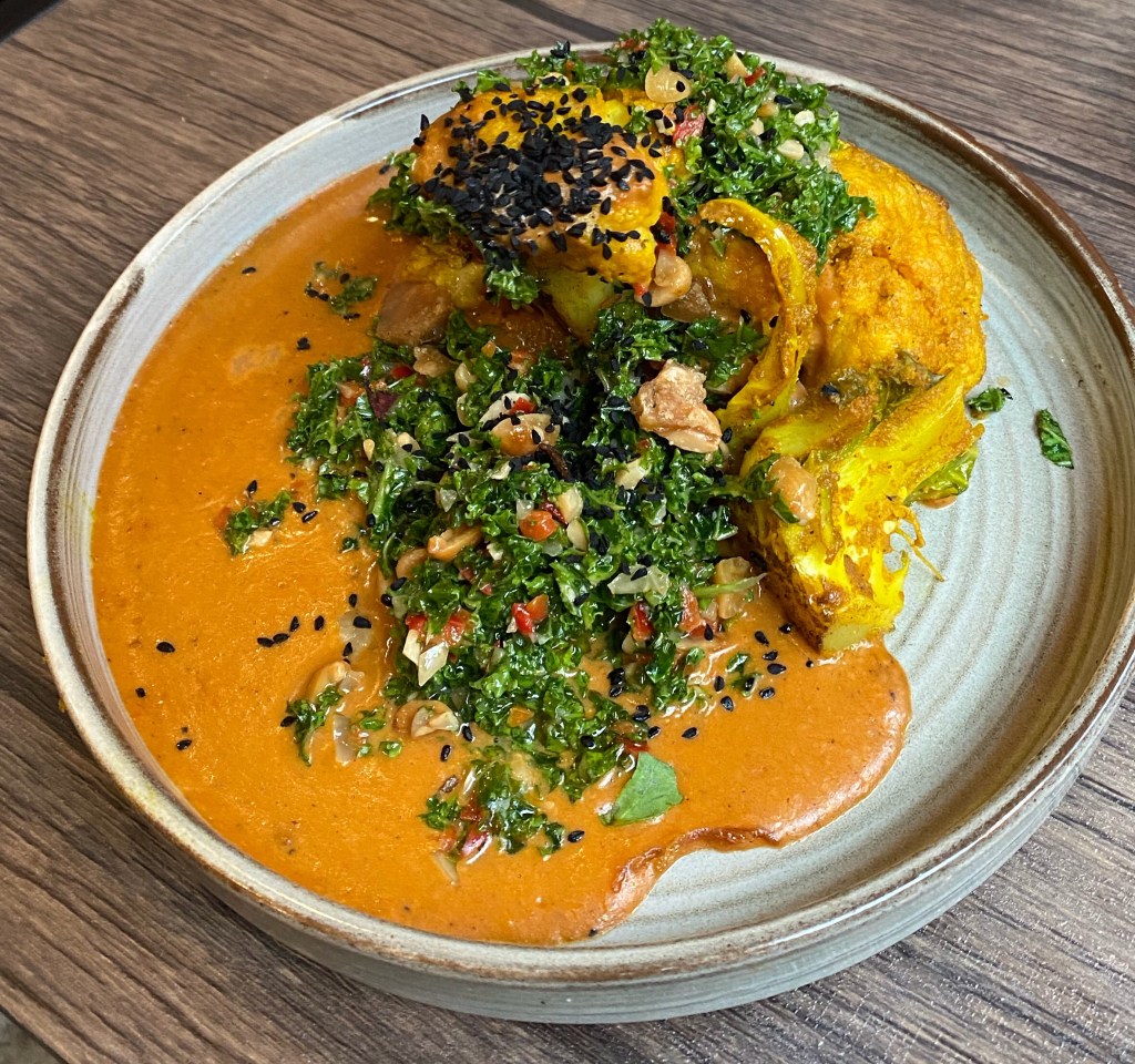 The cauliflower was well cooked and the spiced green sauce is what it said on the menu – spicy – and the peanut sauce added to the thrill. We didn’t need the puffed rice.
