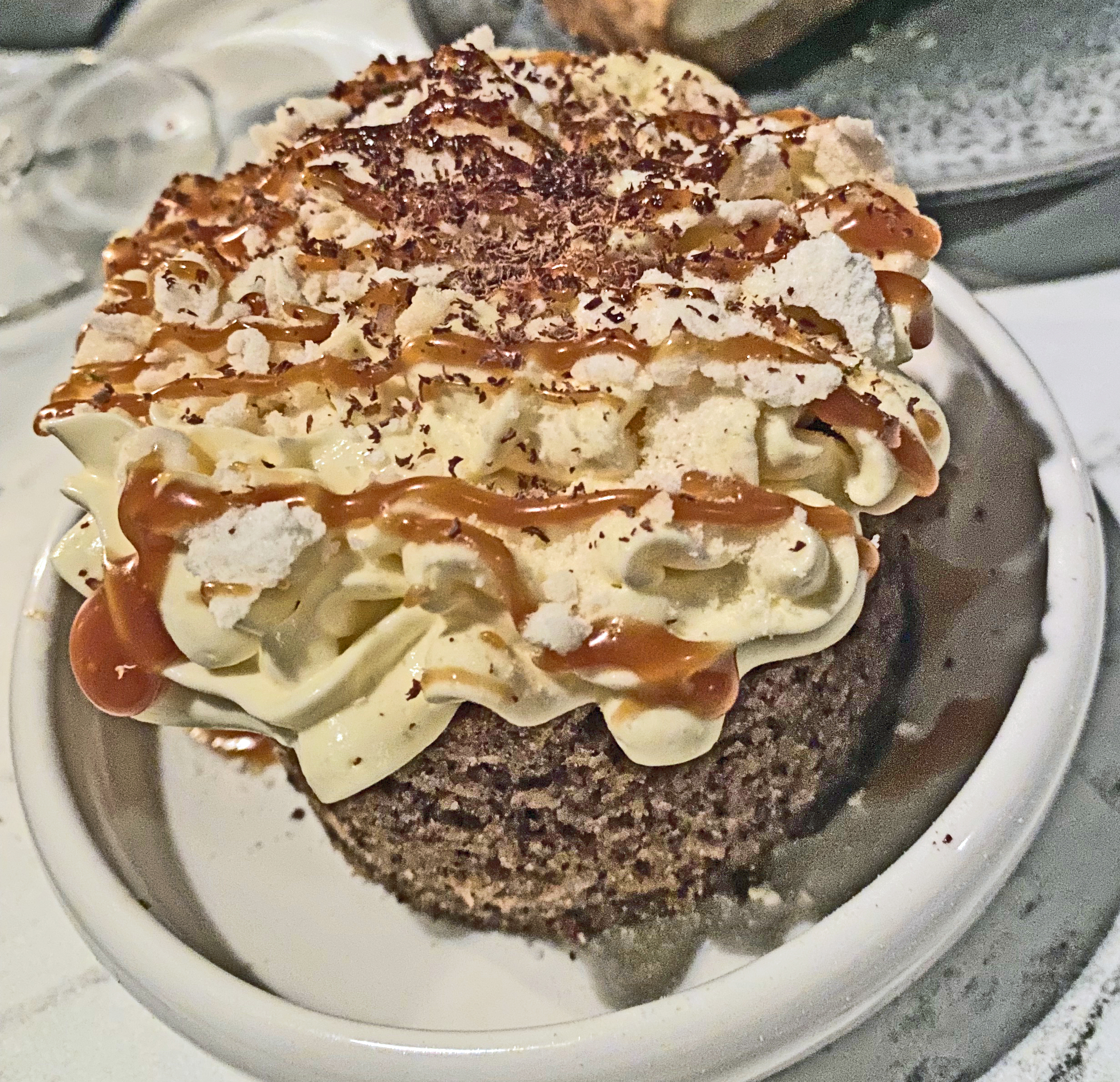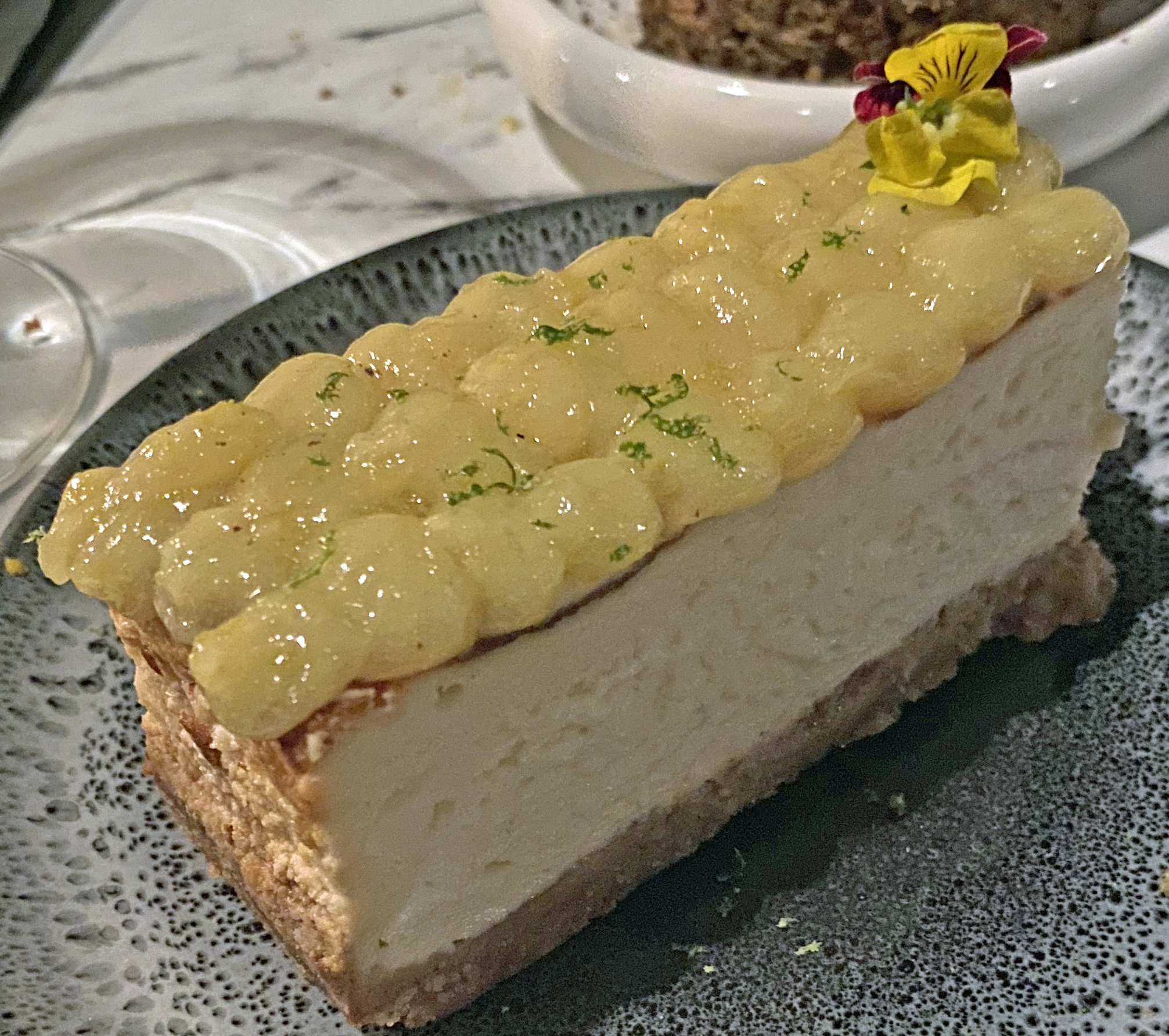 The peanut butter was a tower of delicious flavours – crunchy bottom, a dark chocolate brownie then baked cheesecake and topped with a fluffy cream with peanut butter oozing – a very good idea as peanut butter can be very cloying. It was topped with colourful mini Reece’s pieces for crunch and an extra burst of peanut butter.