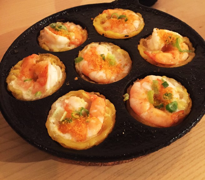 The menu is short with dishes described as smallish, biggish, classic and side orders. We ordered from the biggish (Banh Khot pancakes) and the classics (Bun Noodle Salad), with a smallish (green papaya salad) to start. The salad was delightful and not that smallish. It comes with large prawns. We had a good explanation of the ingredients (prawns, carrots, unripe papaya, red pepper, red onion etc., with some fish sauce and chilli). To keep the papaya crisp you have to plunge it into iced water and you can buy them (they are white fleshed) at Chinese and Asian supermarkets.