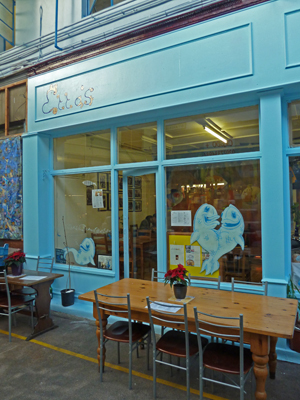 It’s still in the same double unit in Sixth Avenue in Brixton Village and still painted outside in pastel blue. So what has changed inside. Gone is the kitsch mural of the seaside and now it is all black and white – although the chairs are still multi-coloured. We have the very small napkins but now they are presented in a little black paper sleeve, together with a knife and fork. The menu has also changed with items that imply more finesse and we were assured that it also changes regularly.
