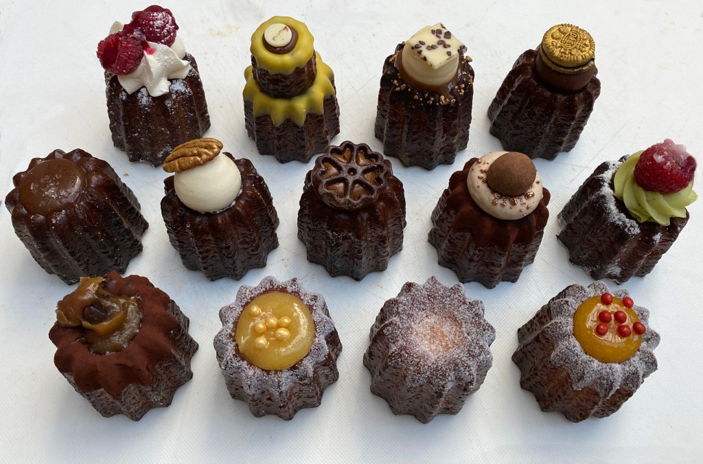 We mentioned this cake shop in the 2020 Christmas post, but we like it so much we thought it needed a special place on EatinBrixton. We ordered a Red Velvet cake for a Dad’s birthday, which was gorgeous, but in this post we want to concentrate on the Canelé de Bordeaux. The styles and tastes are different almost every time and, for our readers of course, we decided to buy one of each – 13 on this visit – so we could try them all. These little cakes are cork-shaped fluted pastries and come from Bordeaux, where the nuns are said to have made them. Now you find them all over France. They have a caramelised crust and soft middle.