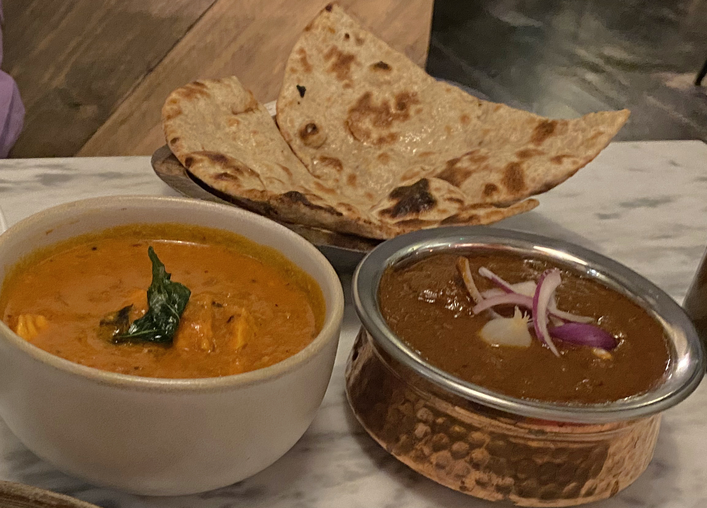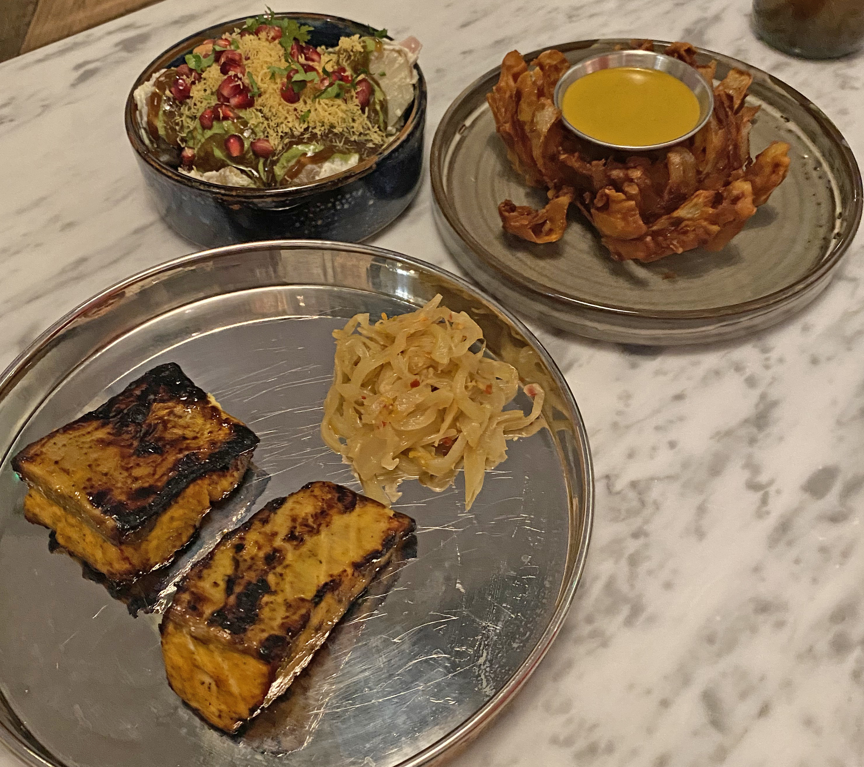 The menu is as it says on the tin – eclectic with small plates, big plates and tandoori and a very small dessert list (ice cream), so just choose another cocktail. Vegetarian is marked on the menu and some vegan options can be made to order. Some dishes look nothing like an Indian – Fish and chips and Currywurst, but a closer look at the ingredients shows them to have an Indian twist.