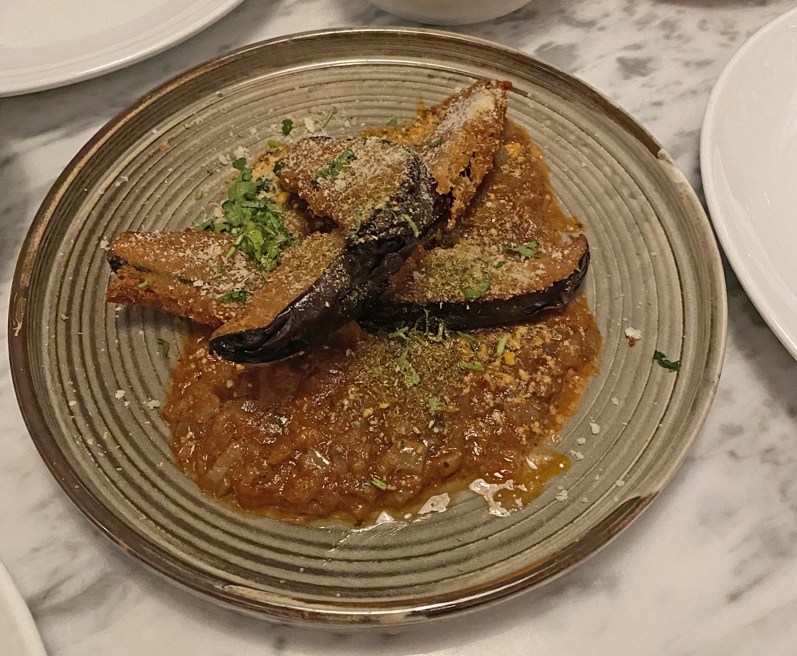 The Aubergine was exactly as you might imagine – breaded and fried in a tomato sauce and topped with parmigiano. But the menu description left off any reference to spices and they were there in abundance in the breading and in the tomato sauce. It was how I like this dish, crispy pieces of aubergine with soft insides, any blandness being banished by the tomato sauce.