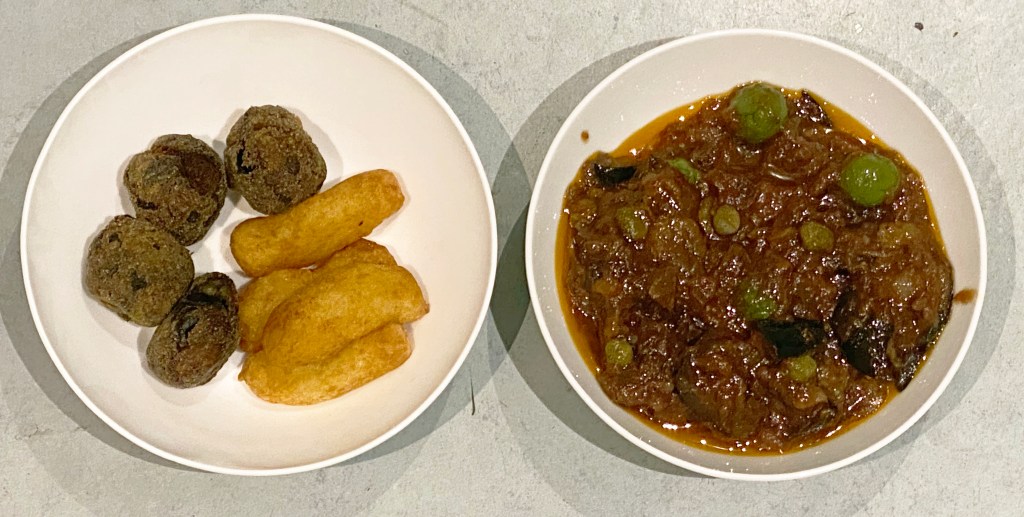 Despite having to travel all the way to Brixton, the food arrived hot enough to eat, although, as we ate in waves, we ended up putting the rice in the microwave. It was all really interesting – even the fried oysters which were covered in well-seasoned crumbs and batter (and I am not that much of a fan of fried oysters).