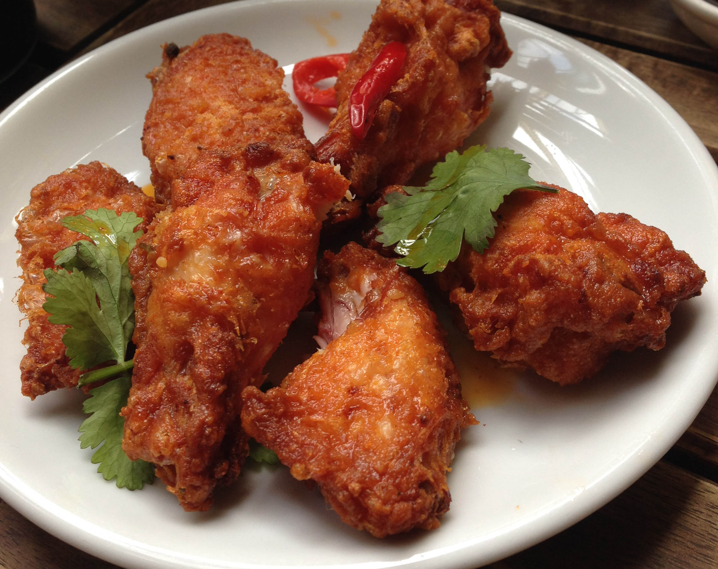 The Village fills up at 1.00 pm and so to make sure we had a table we arrived at opening time, 12.00. The menu isn’t taxing – four soups, three rice dishes, a salad and side dishes which all warn you about the level of chilli. Side dishes include hot chicken wings (“some say the best in London” – a bold comment in the heart of jerk chicken land). We ordered the Wonton Noodle soup and the Sweet Chili Chicken rice which were easily enough for lunch.