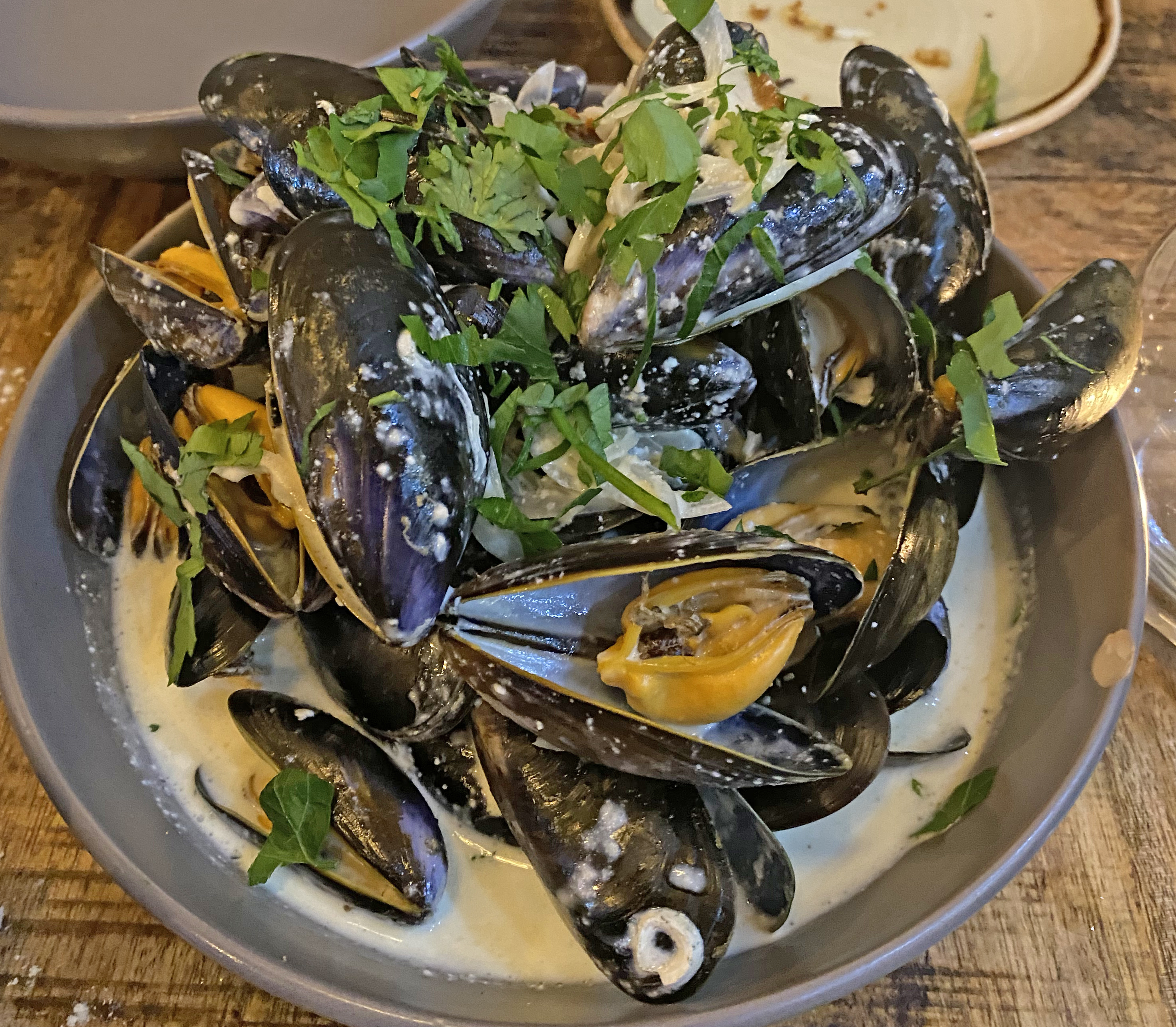 We were very hungry so we went out on a limb and ordered loaded chips. As you can see they really were loaded (Bacon, House made Nacho cheese (???), Diced tomato, spring onion & coriander). To be honest we could have done without the cheese. But these were “real” chips, crispy and altogether delicious with the addition of everything. Again the tomato cut any greasiness and we had yet another daily portion of fruit (well a tomato is a fruit).