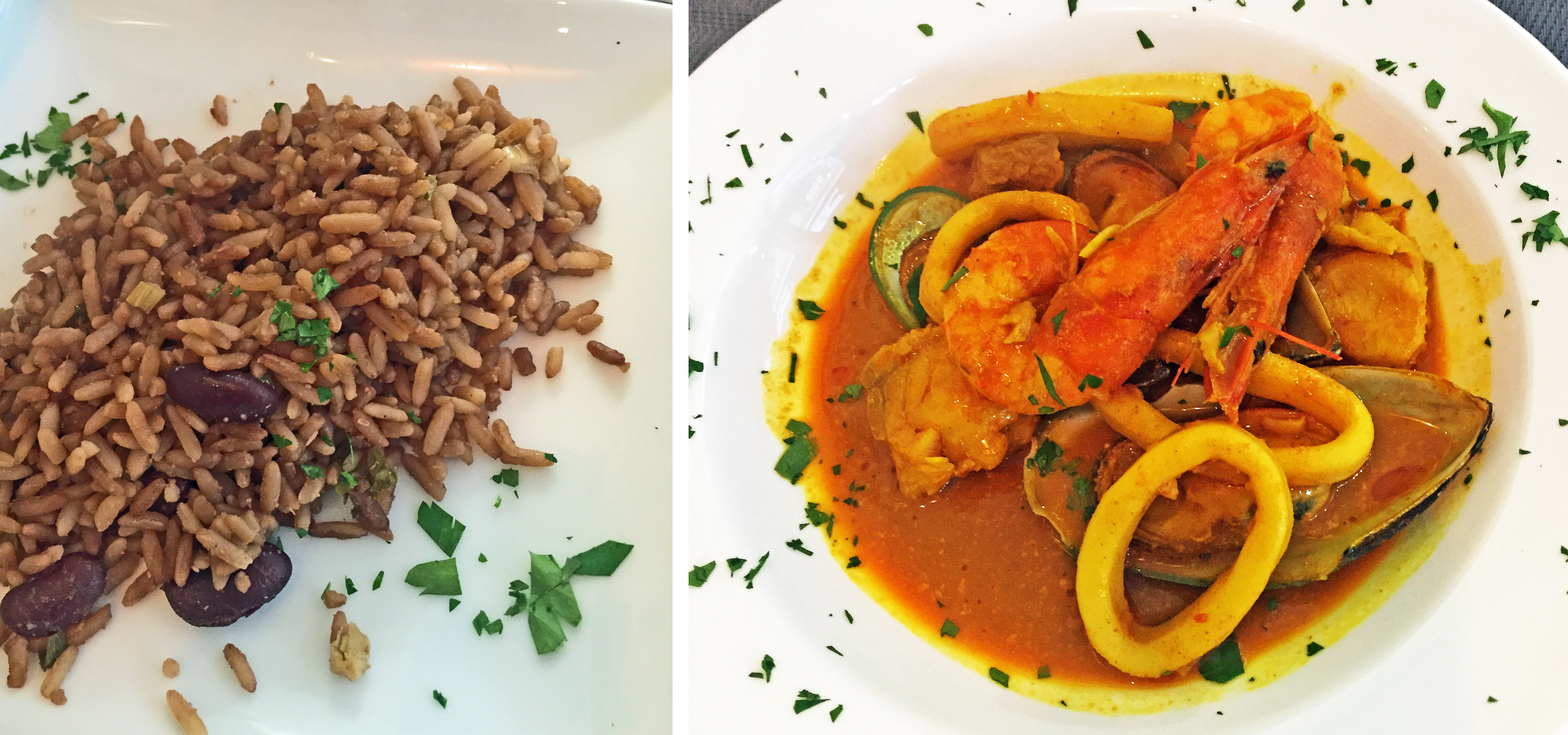 The menu is still focussed on fish but now includes a wider variety of starters including ackee soup (ackee is the Jamaican national fruit although it is eaten as a vegetable in ackee and saltfish) and the menu describes this soup as coming with salt fish flakes, sweet peppers and crispy croutons. Then there is crispy calamari, garlic peppered prawns and marinated tuna. The ackee soup can be ordered without saltfish for the sole veggie option.  There are four salad options and then the mains have spaghetti, risotto, fish soup and confit cod. The veggie option is sweet potato and pumpkin curry. We did miss the superb battered fish in Etta’s tasty batter.