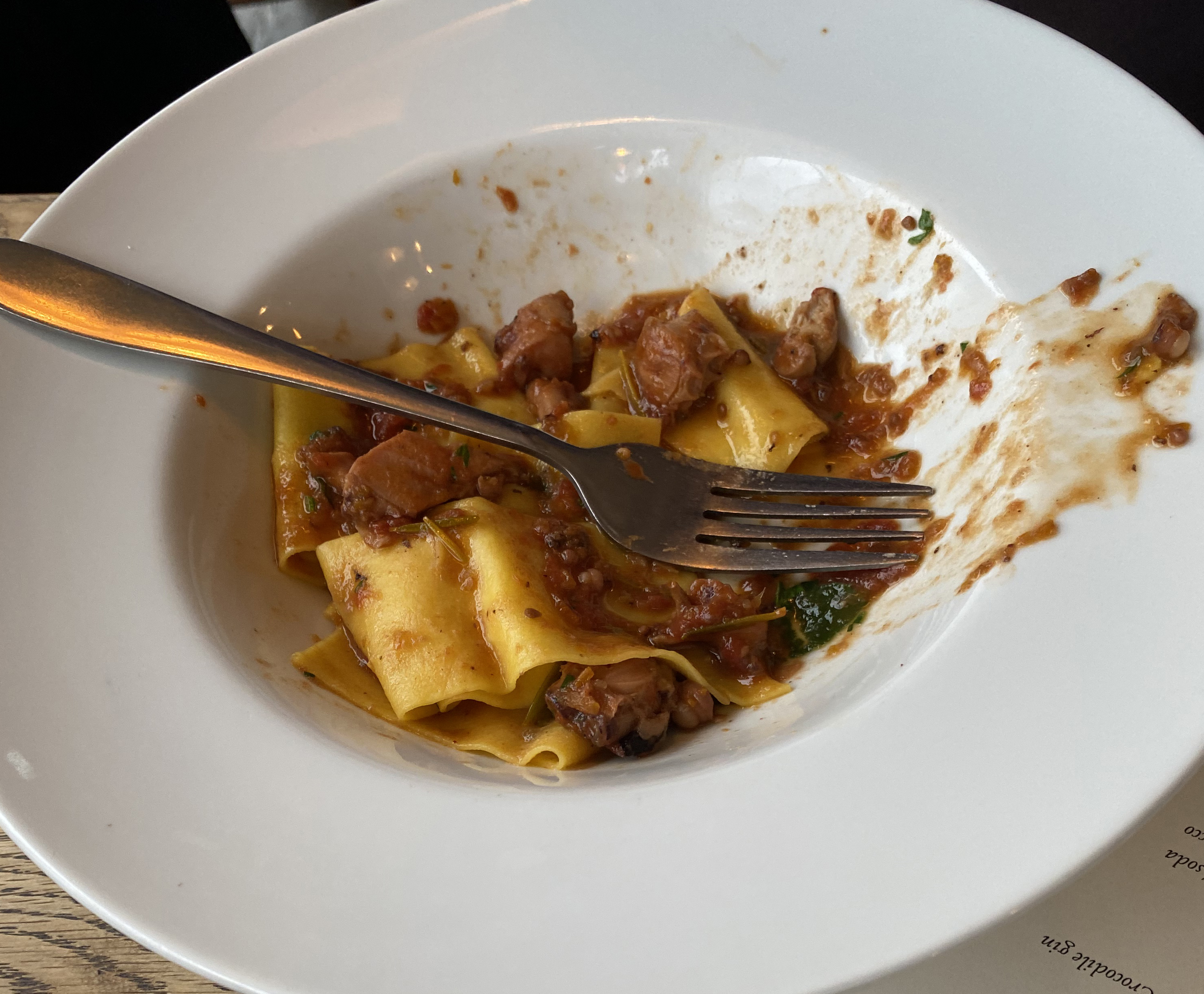 We saw people taking pizza home but we finished the whole lot so had not space for post-pizza. We washed it all down with no logo craft lager and a glass of Montepulciana.