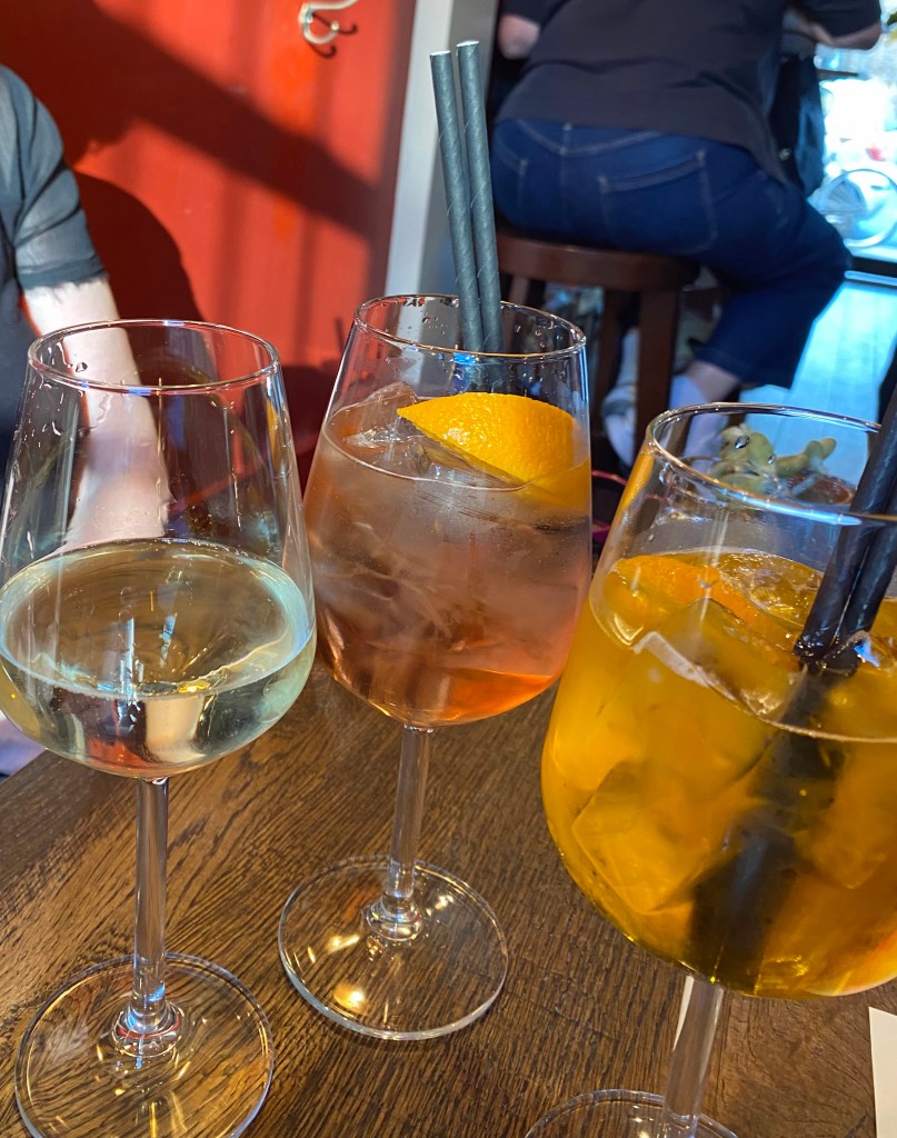 We washed it down with a Spritz classic, a glass of frizzante wine and crodino spritz, and then had further wine and beer.