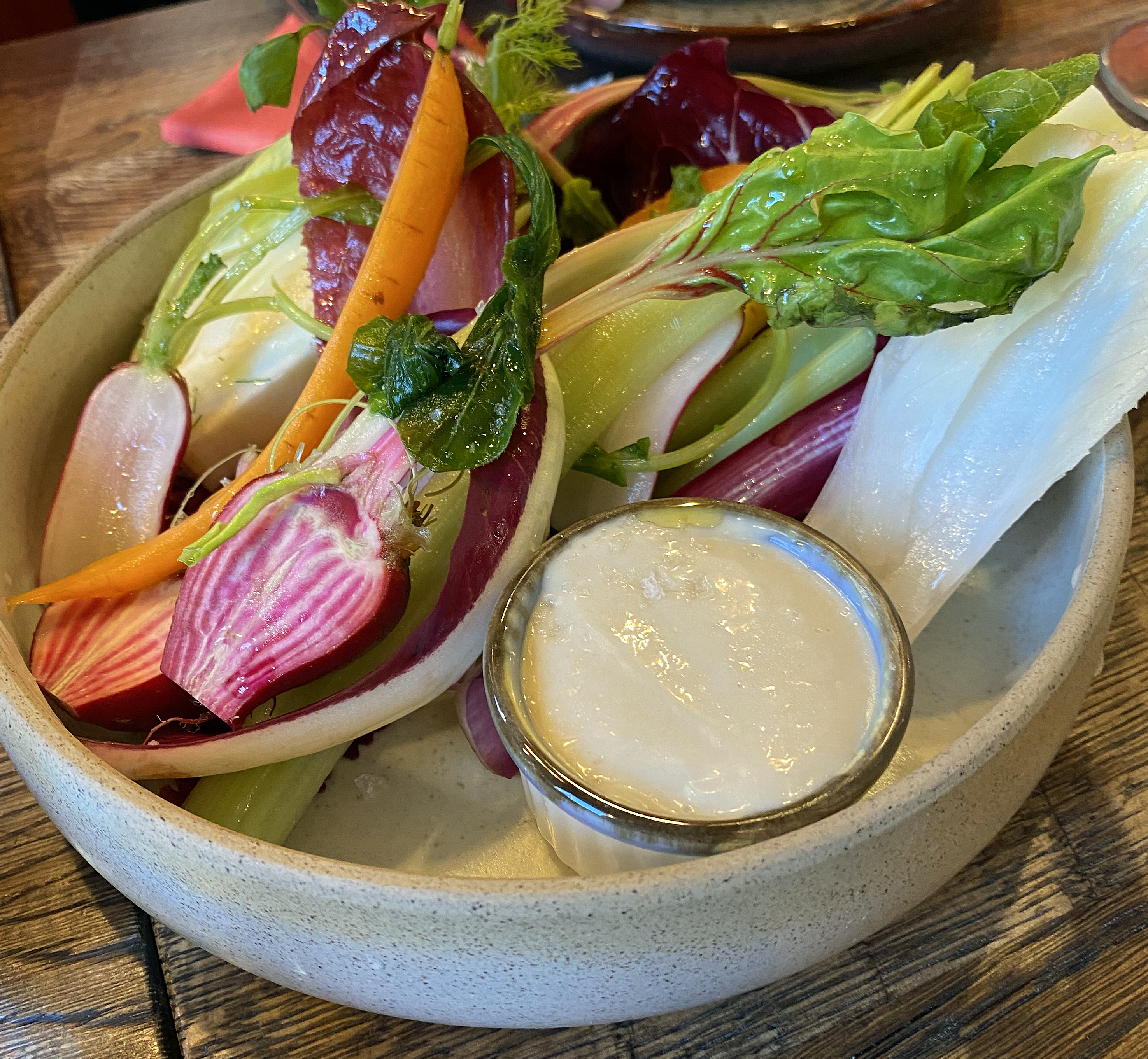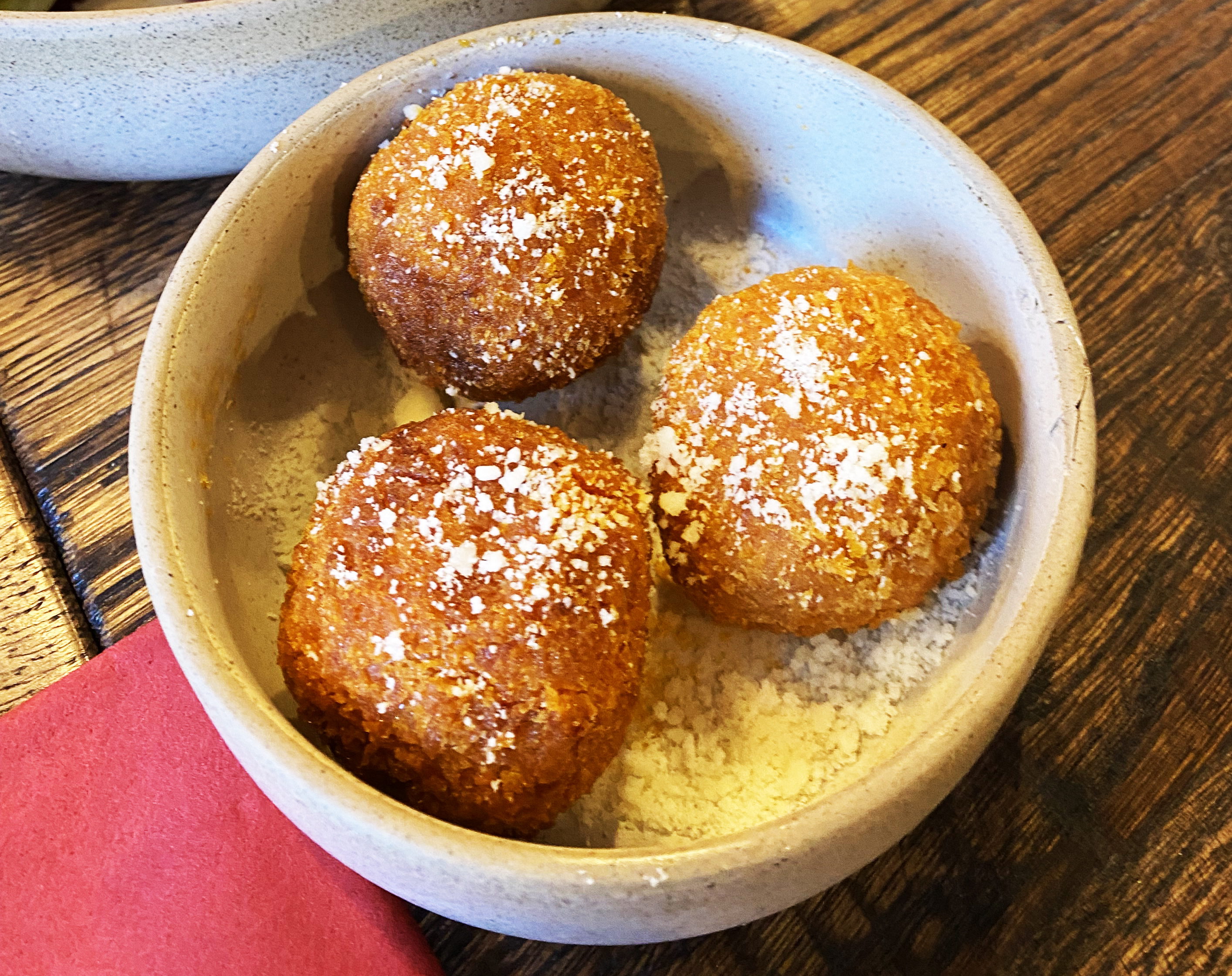 We were three people so indulged ourselves at least one dish from each category. So we had Nduja arancini, green anchovy arancini, the cheese board, a vegetable bagna cauda, and a four cheese pizzette.