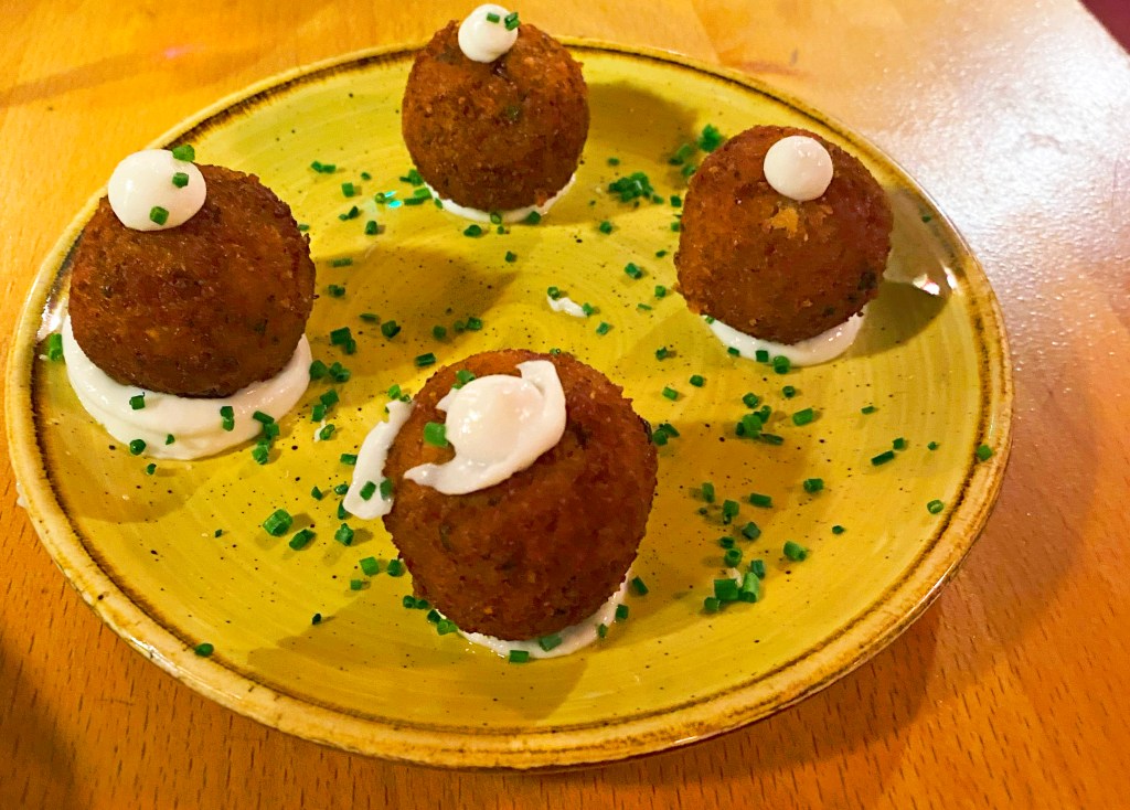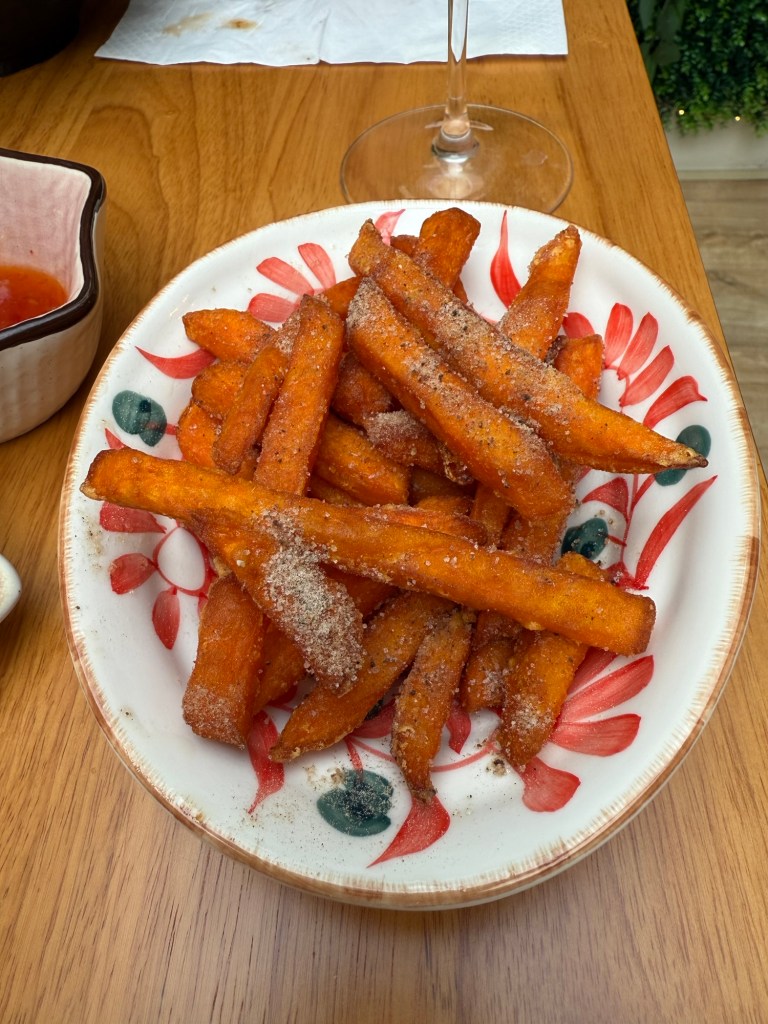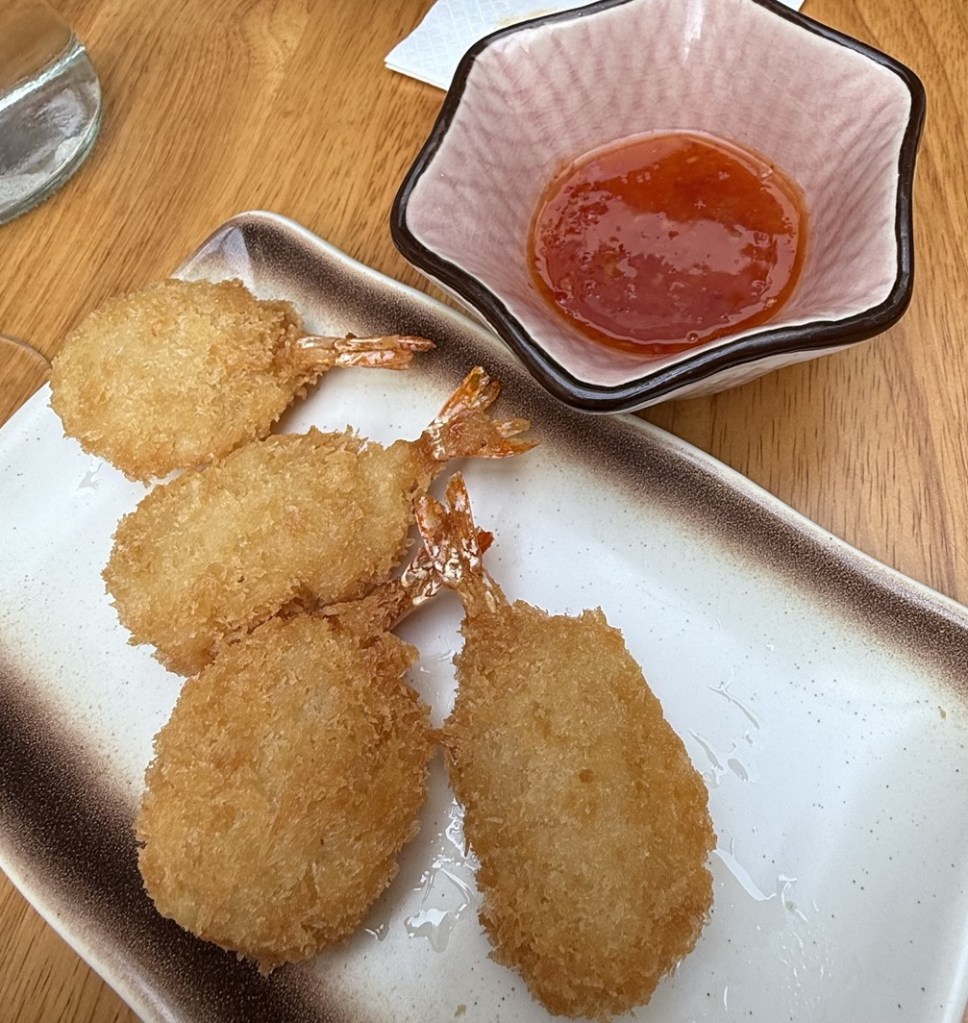 We ordered Fried Butterfly Shrimp with a dipping sauce and sweet potato fries with plum powder. They were as suggested although the plum flavour was very subtle although we could see it.